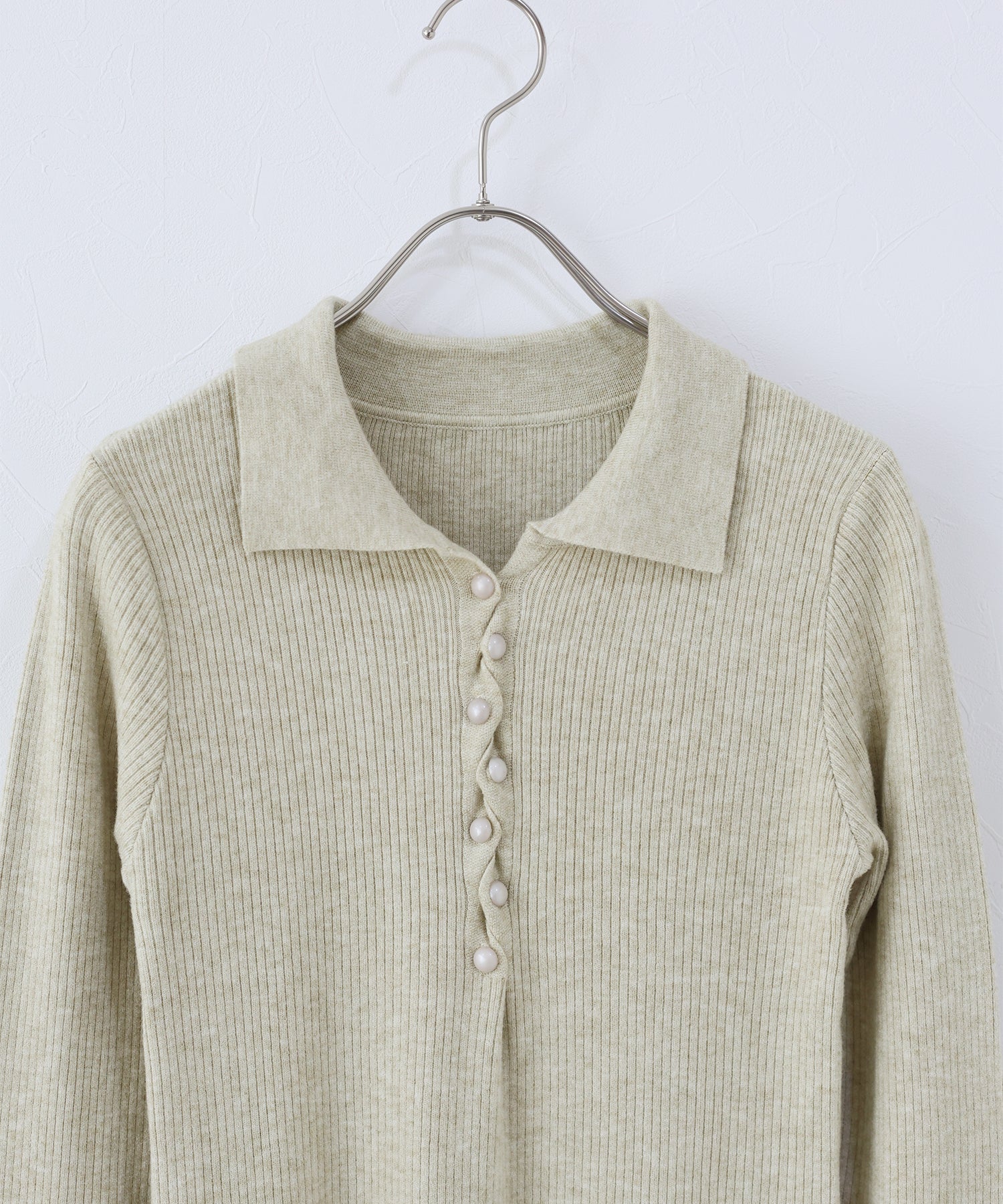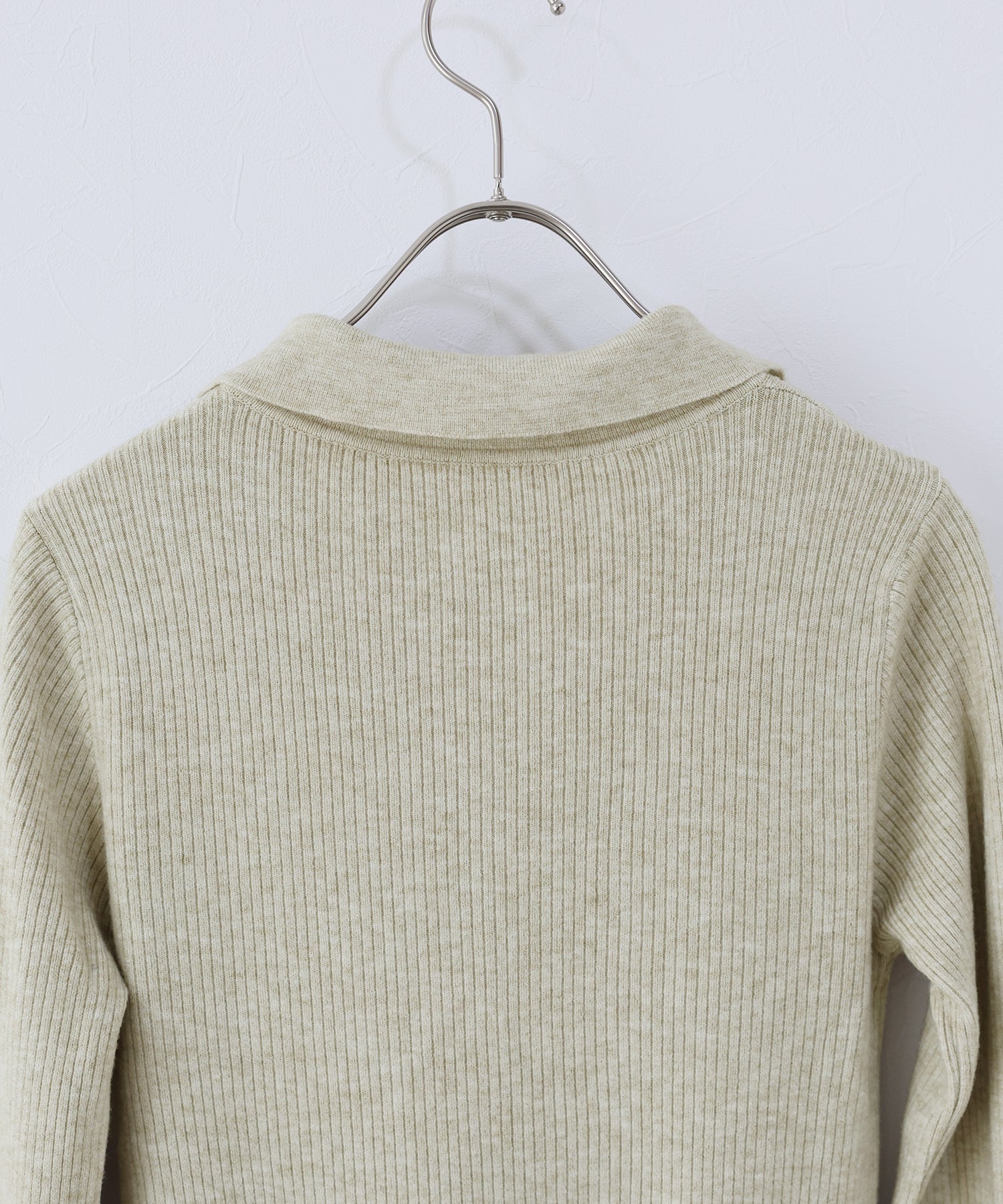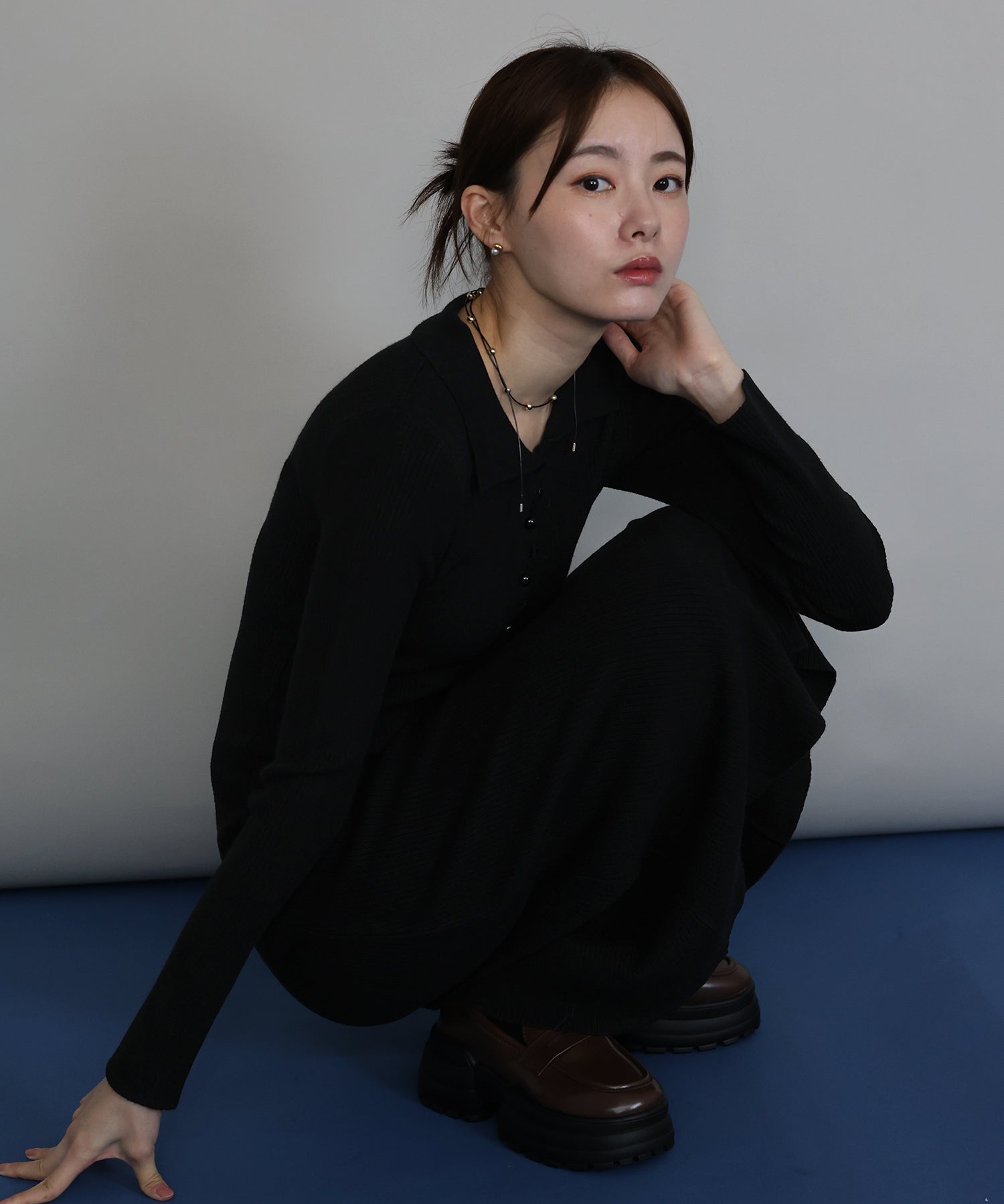 衿付きポロデザインが程よく引き締まった印象を与え、シンプルながらも洗練された存在感を放ちます。