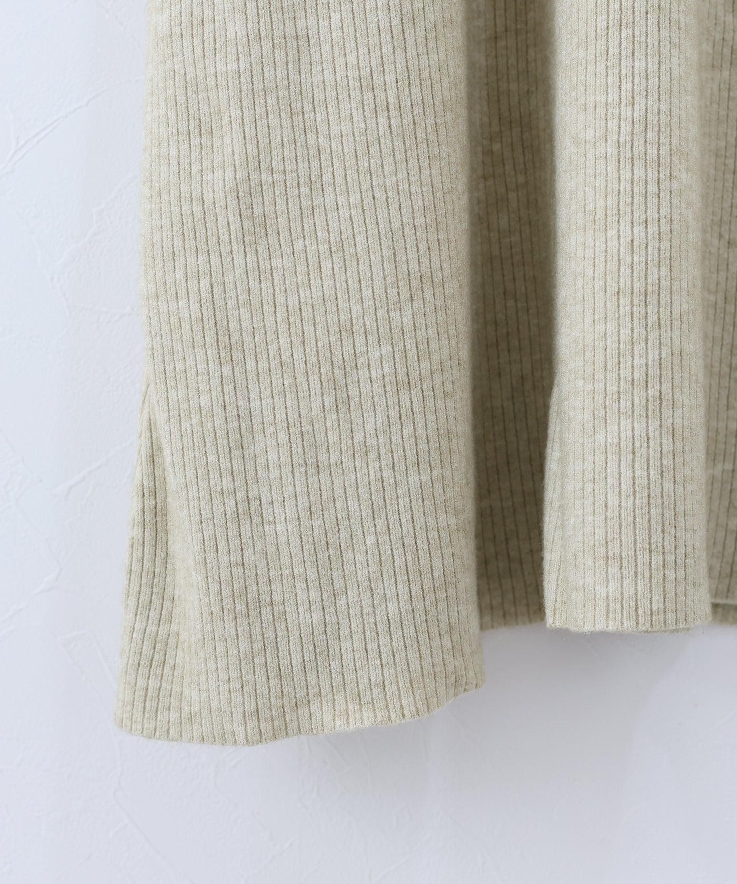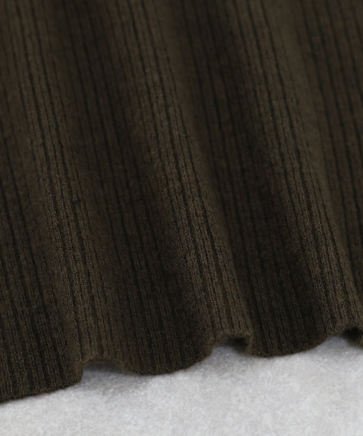 縦ラインを強調するリブ編みがモードなシルエットを演出し、1枚で都会的なスタイリングが完成します◎