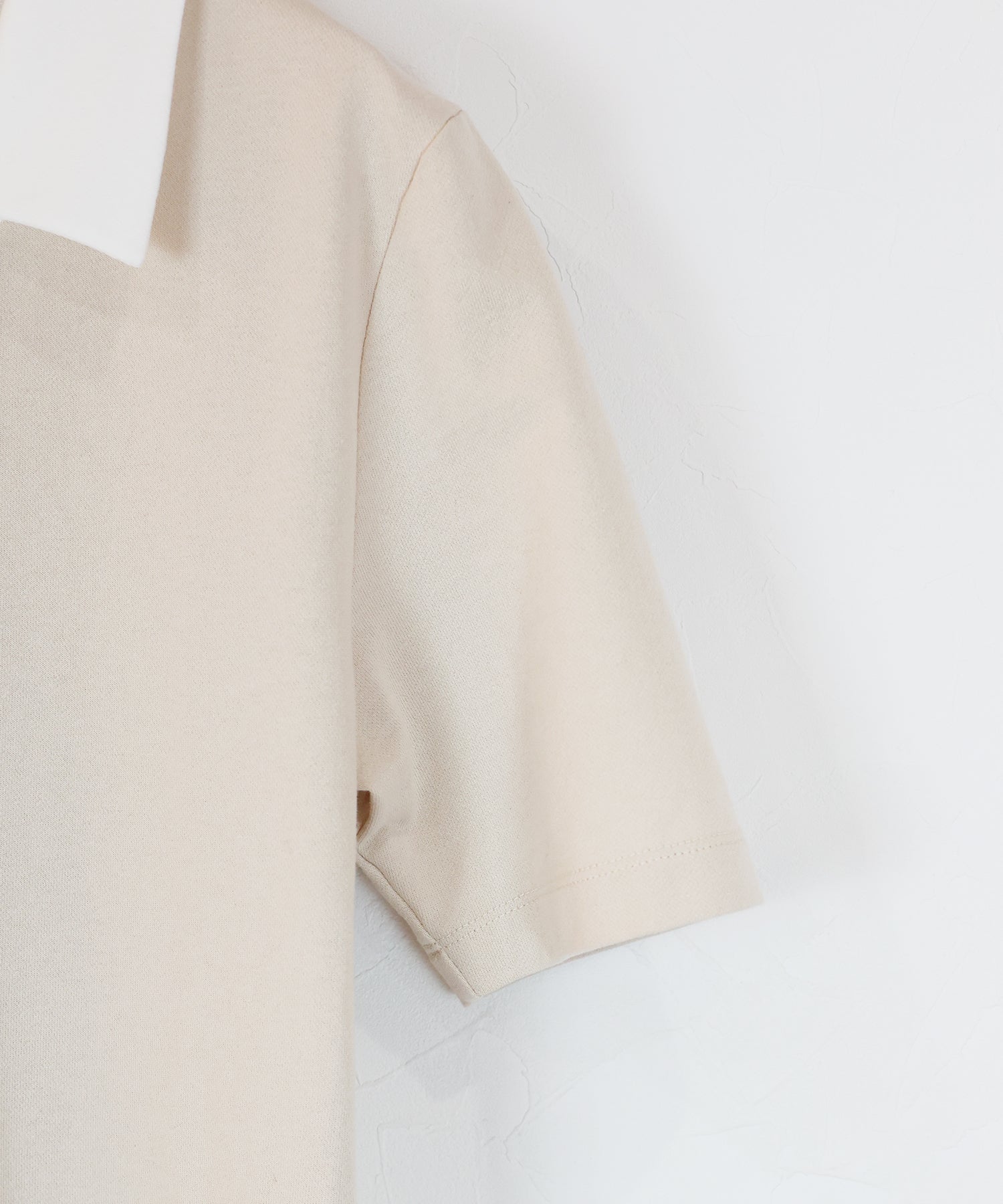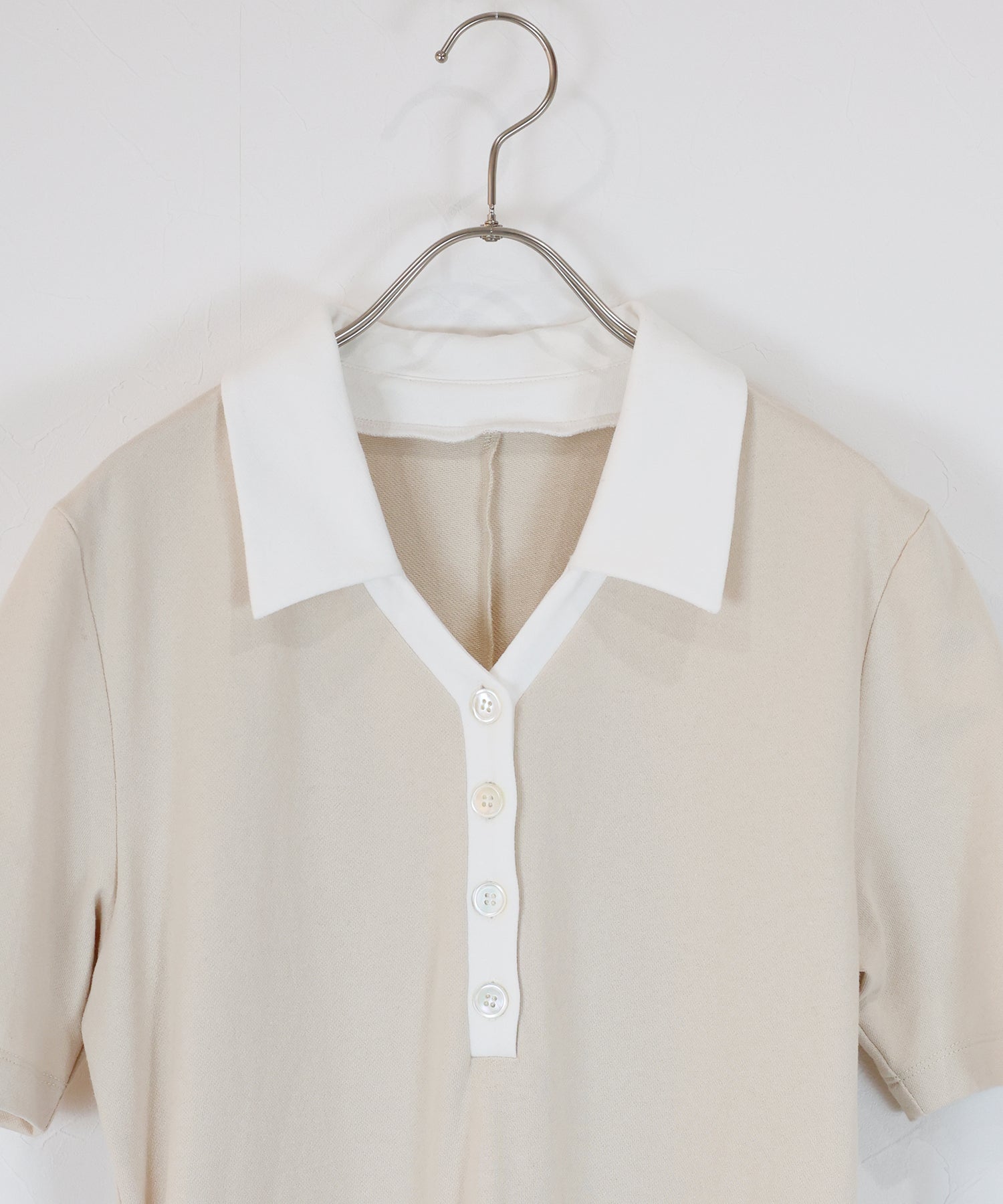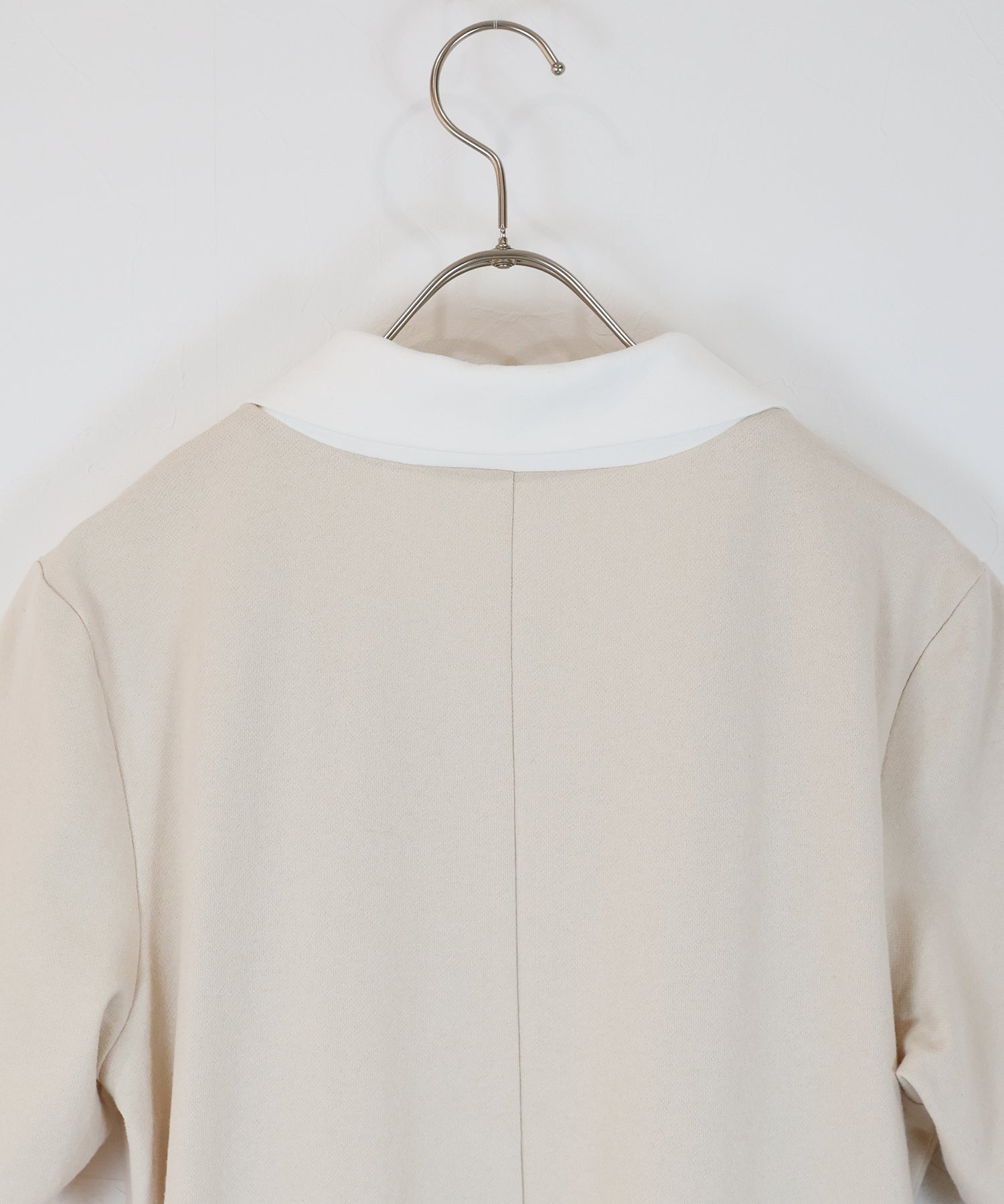 顔周りをスッキリと見せるシャープなスキッパーネックを採用し、