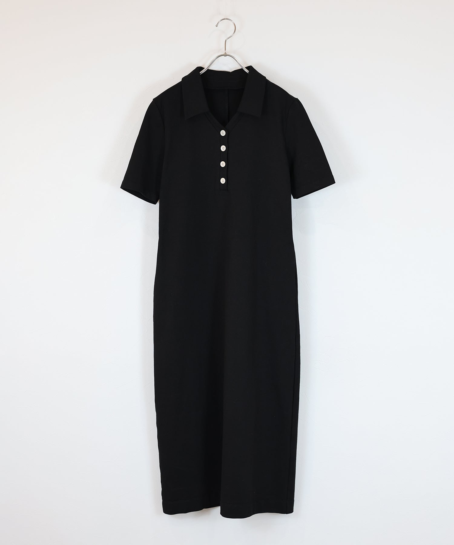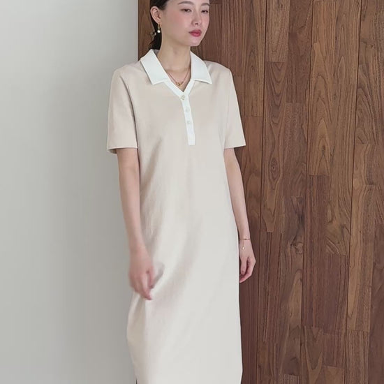 Vラインのスキッパー襟がクリーンで都会的なリズムを刻むポロワンピース。