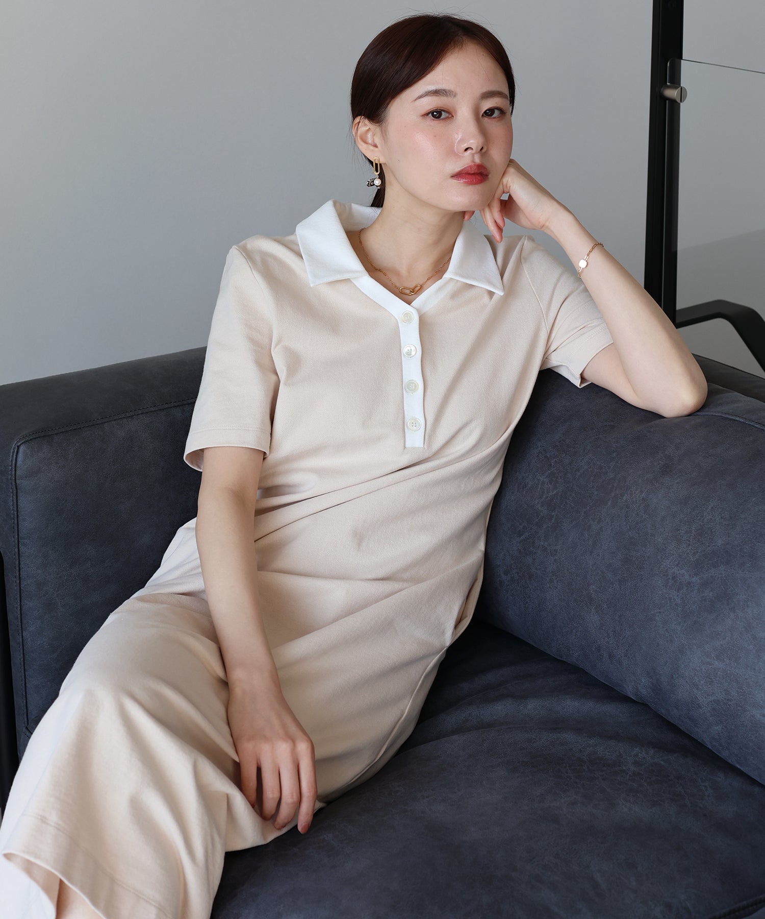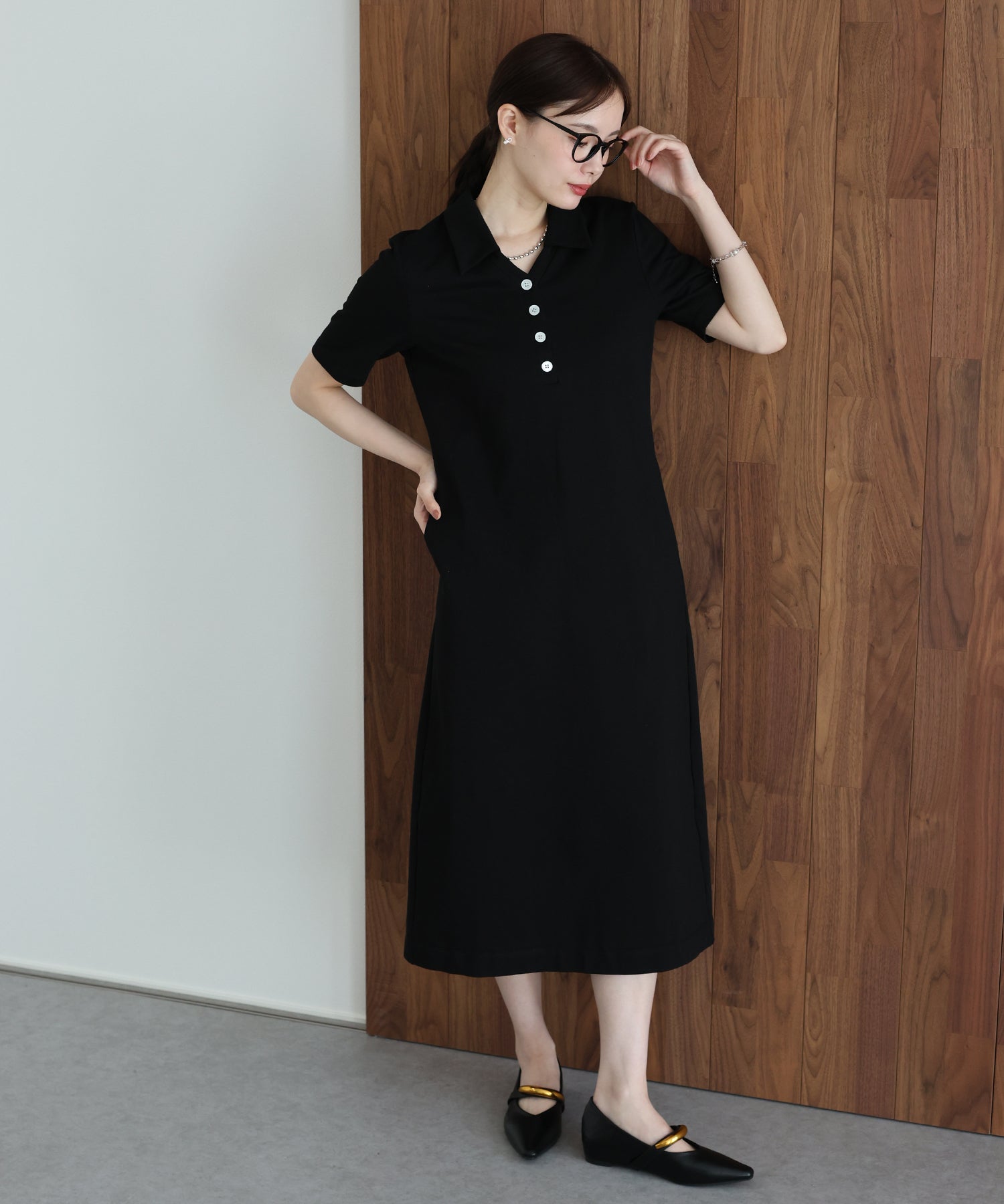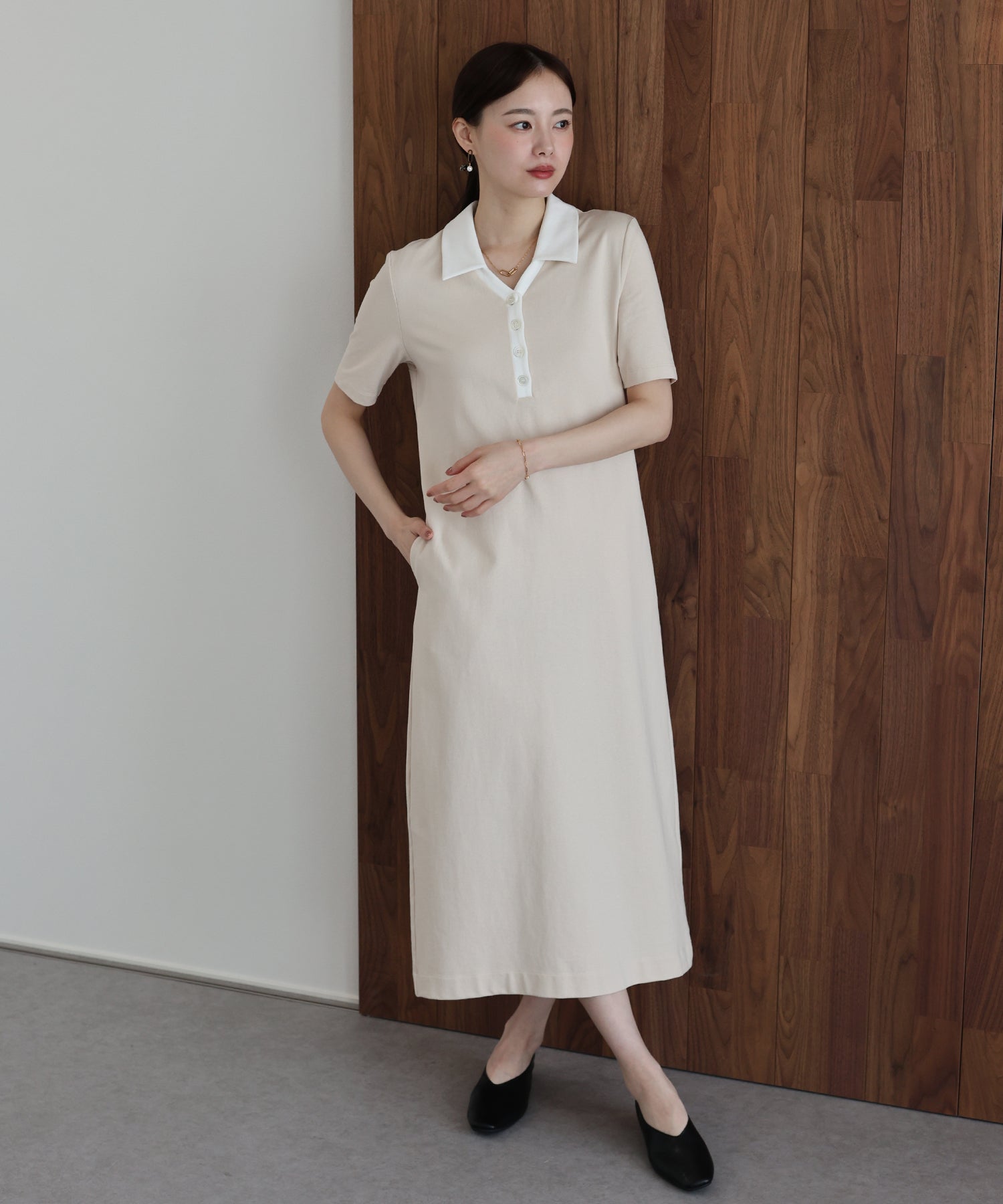 大人の抜け感を纏う、スキッパーポロワンピース