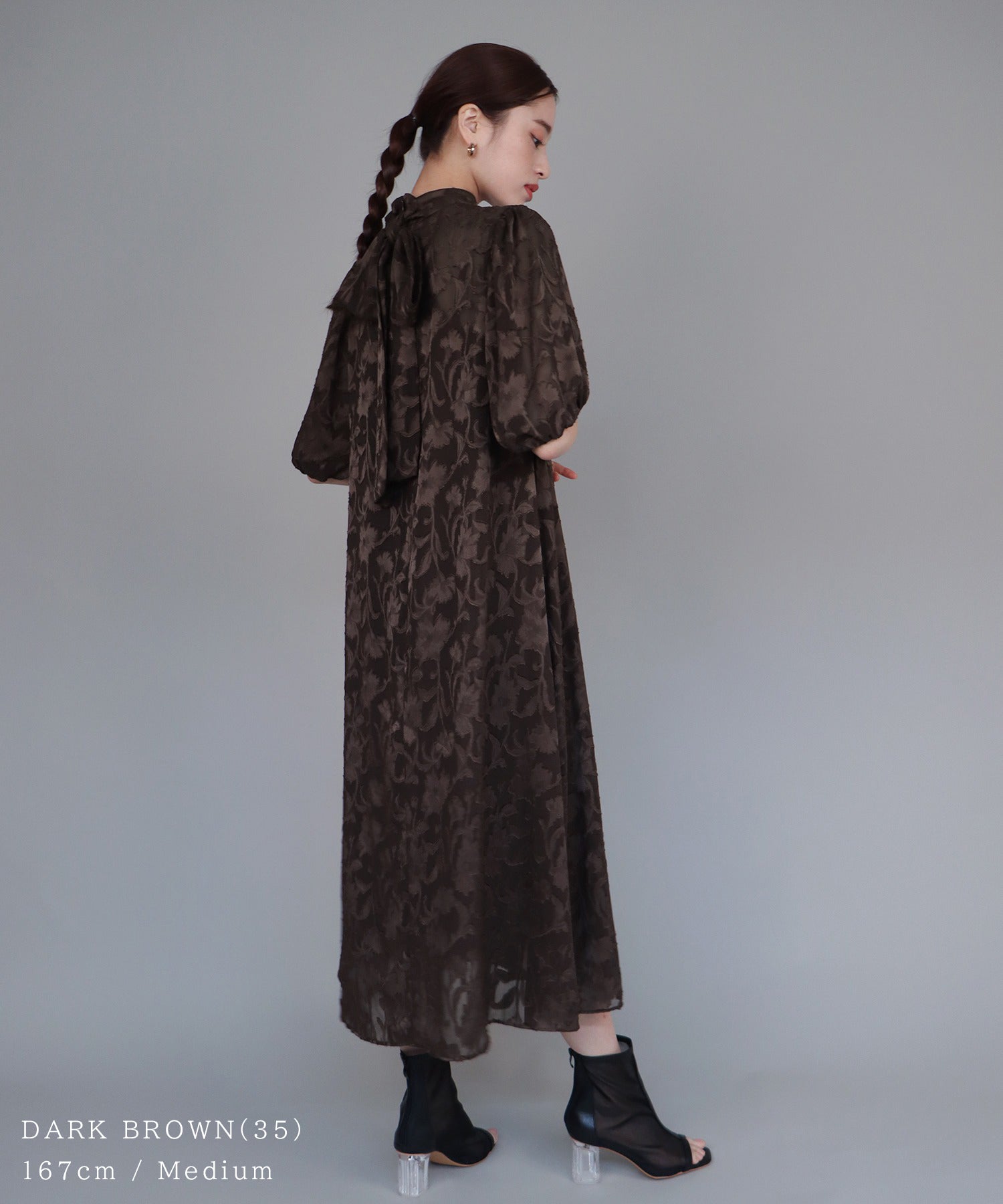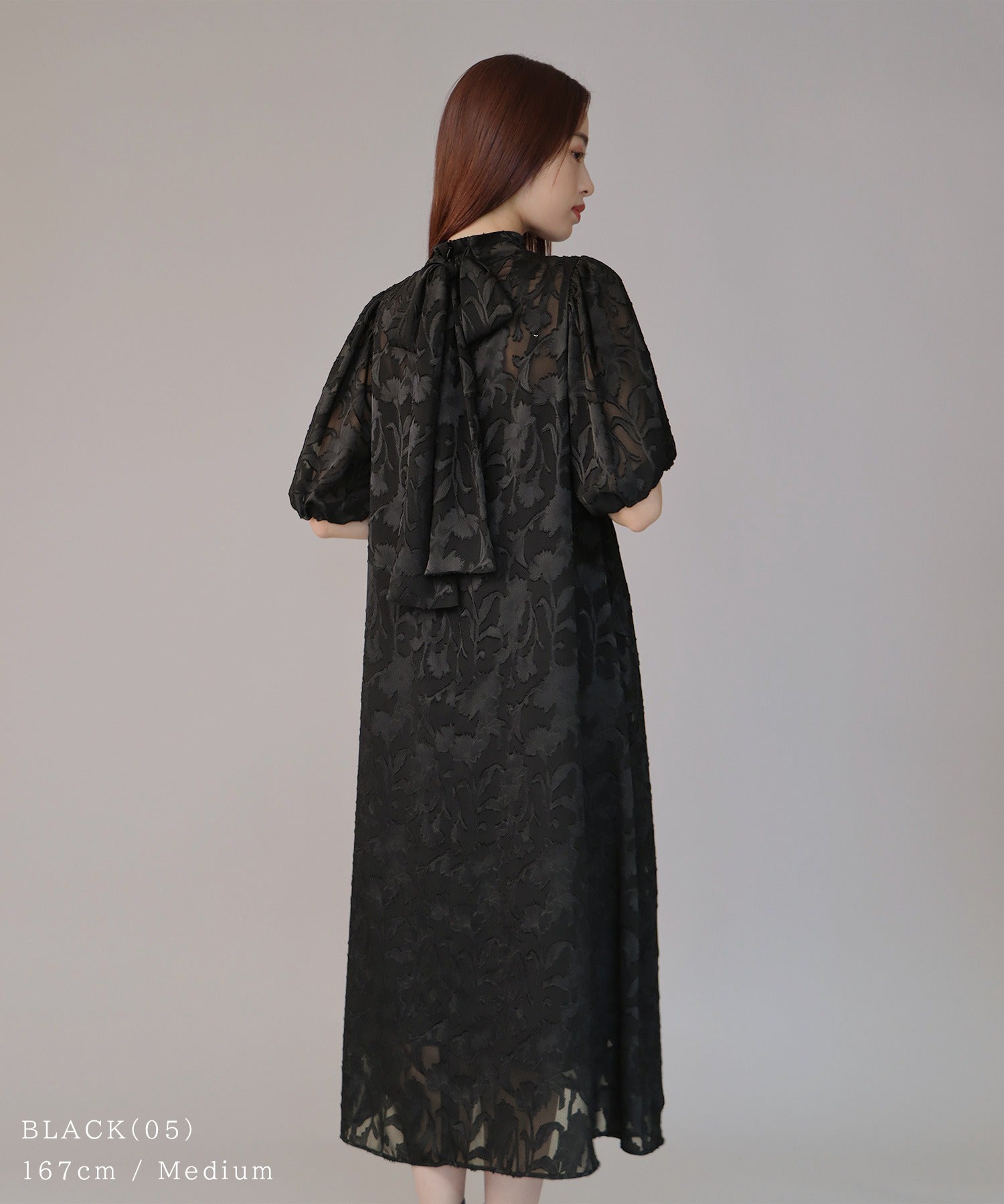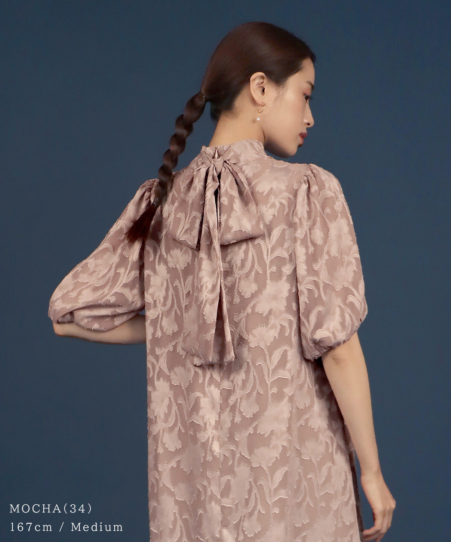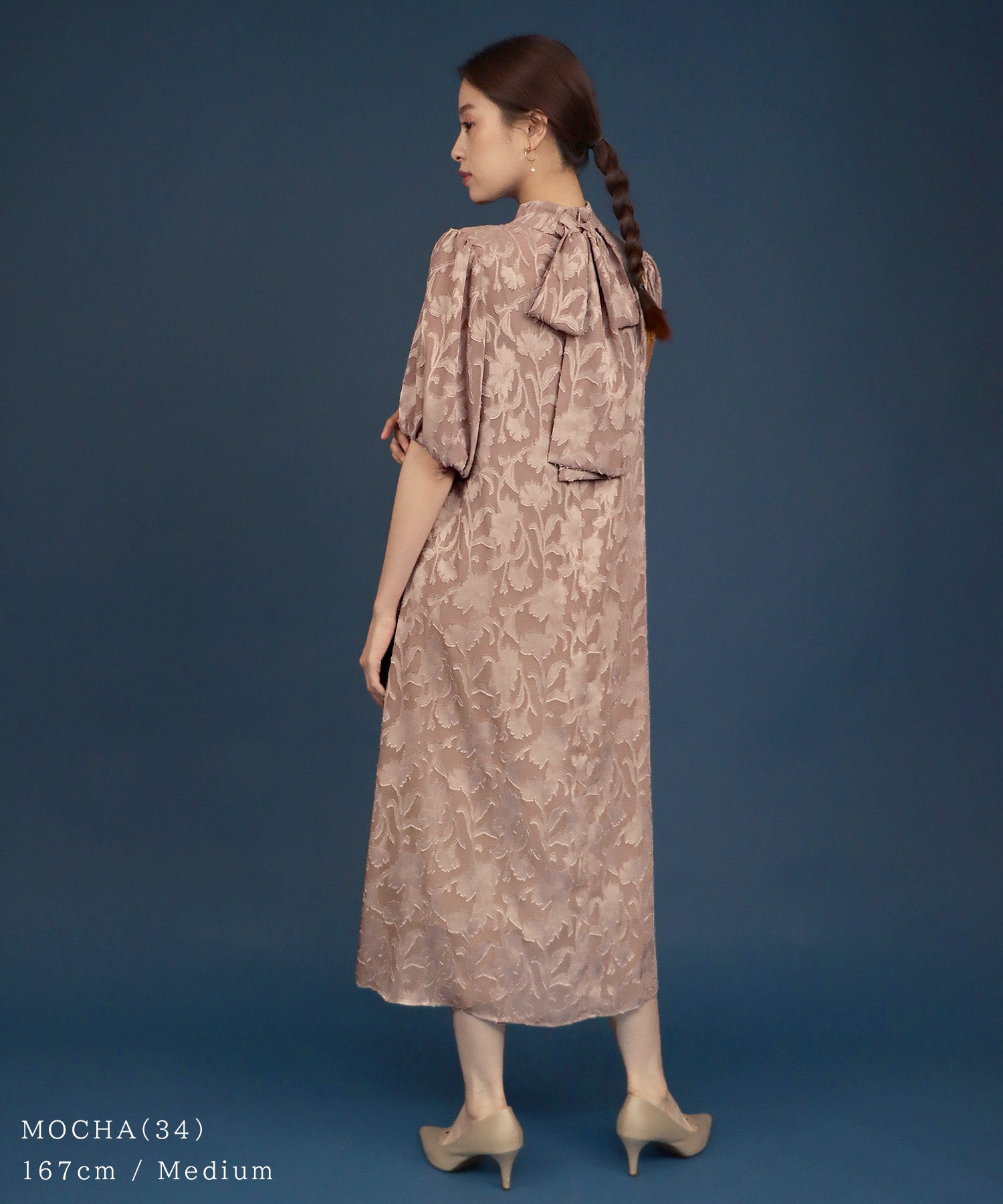 【TIME SALE】インナー付きバックリボンジャガードドレス