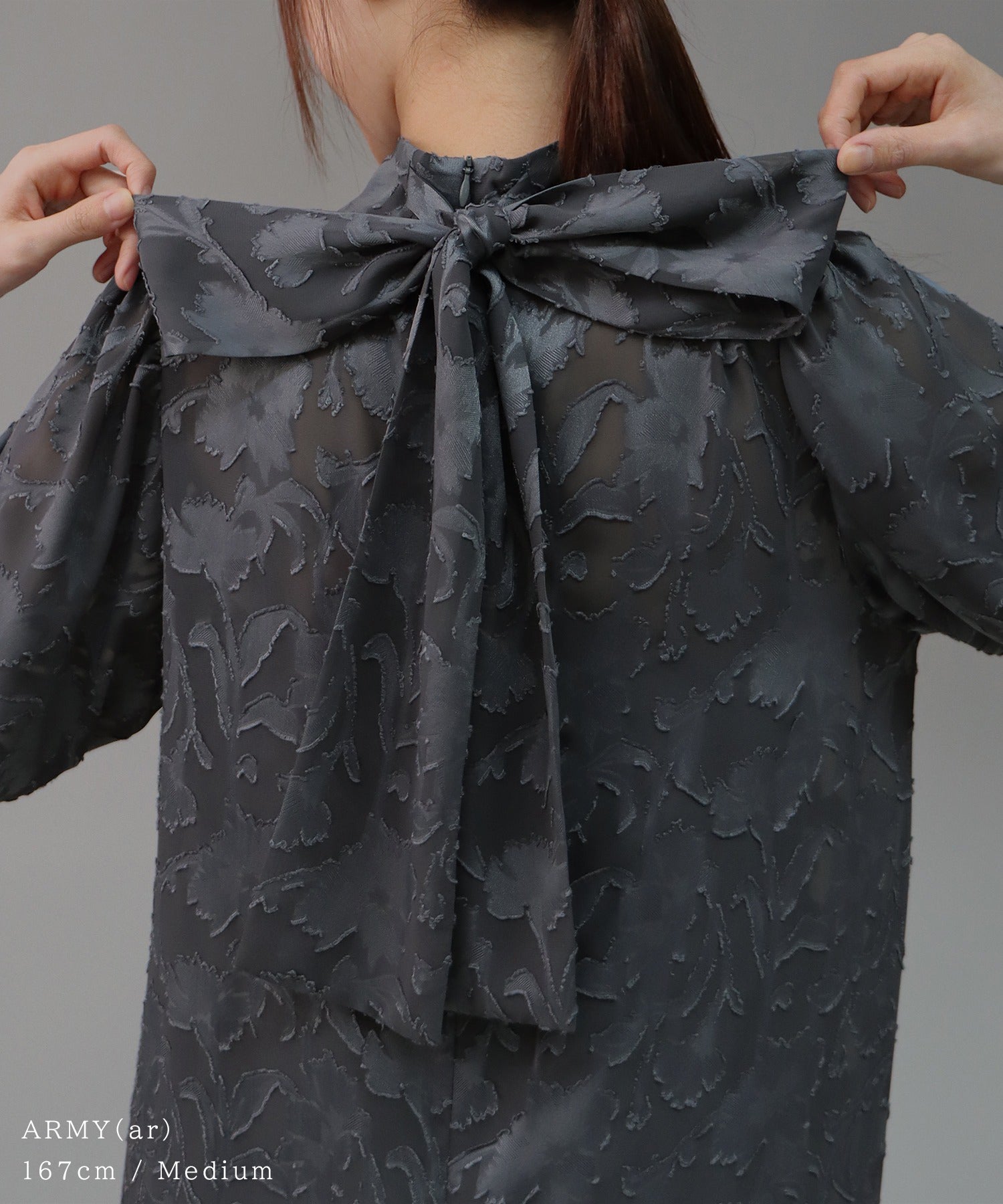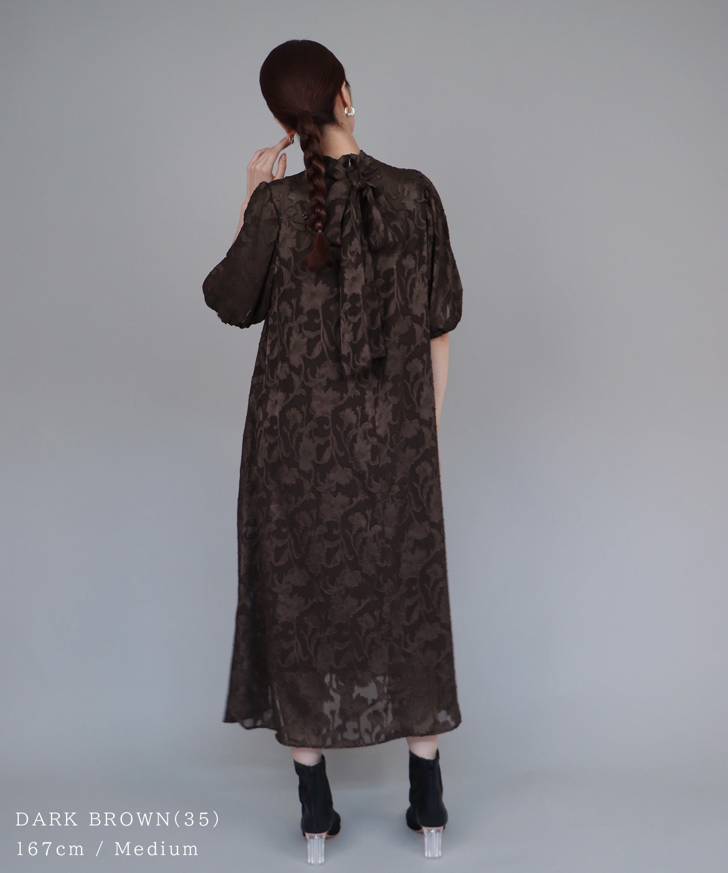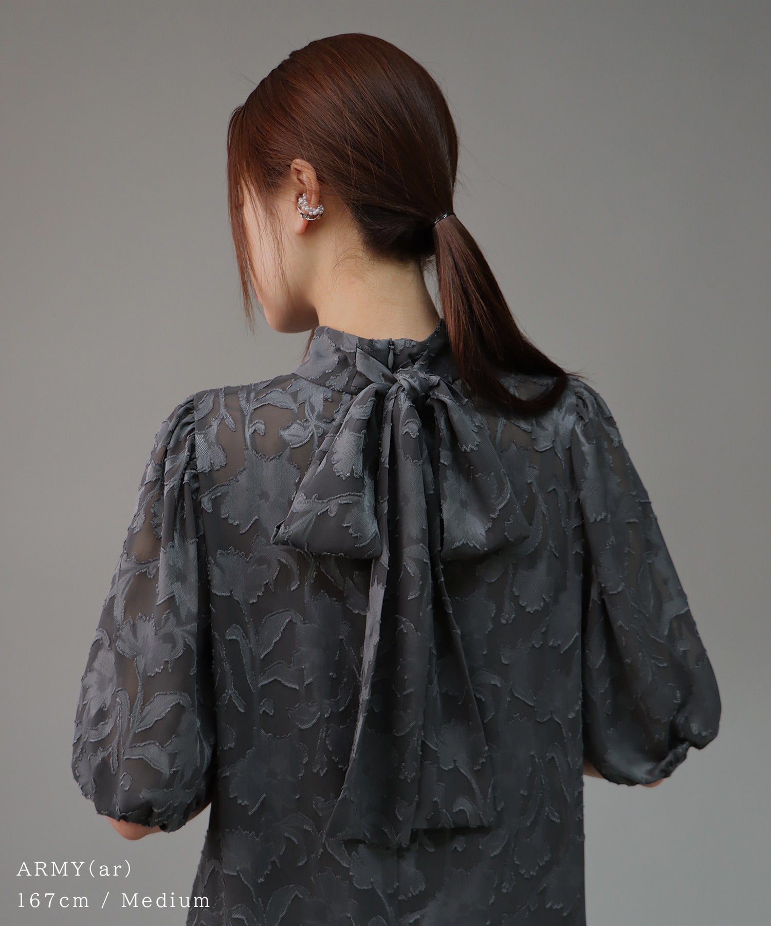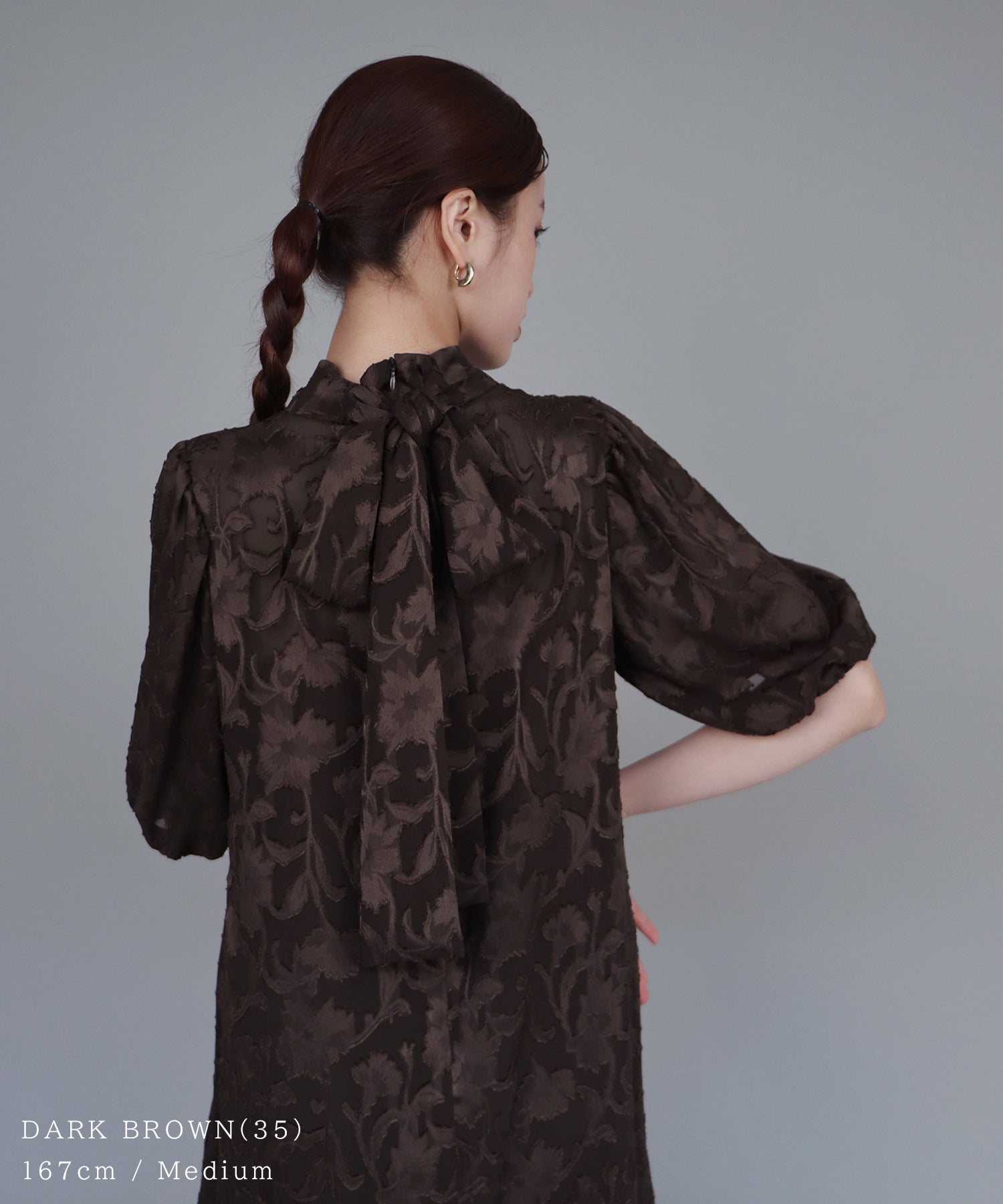 【TIME SALE】インナー付きバックリボンジャガードドレス