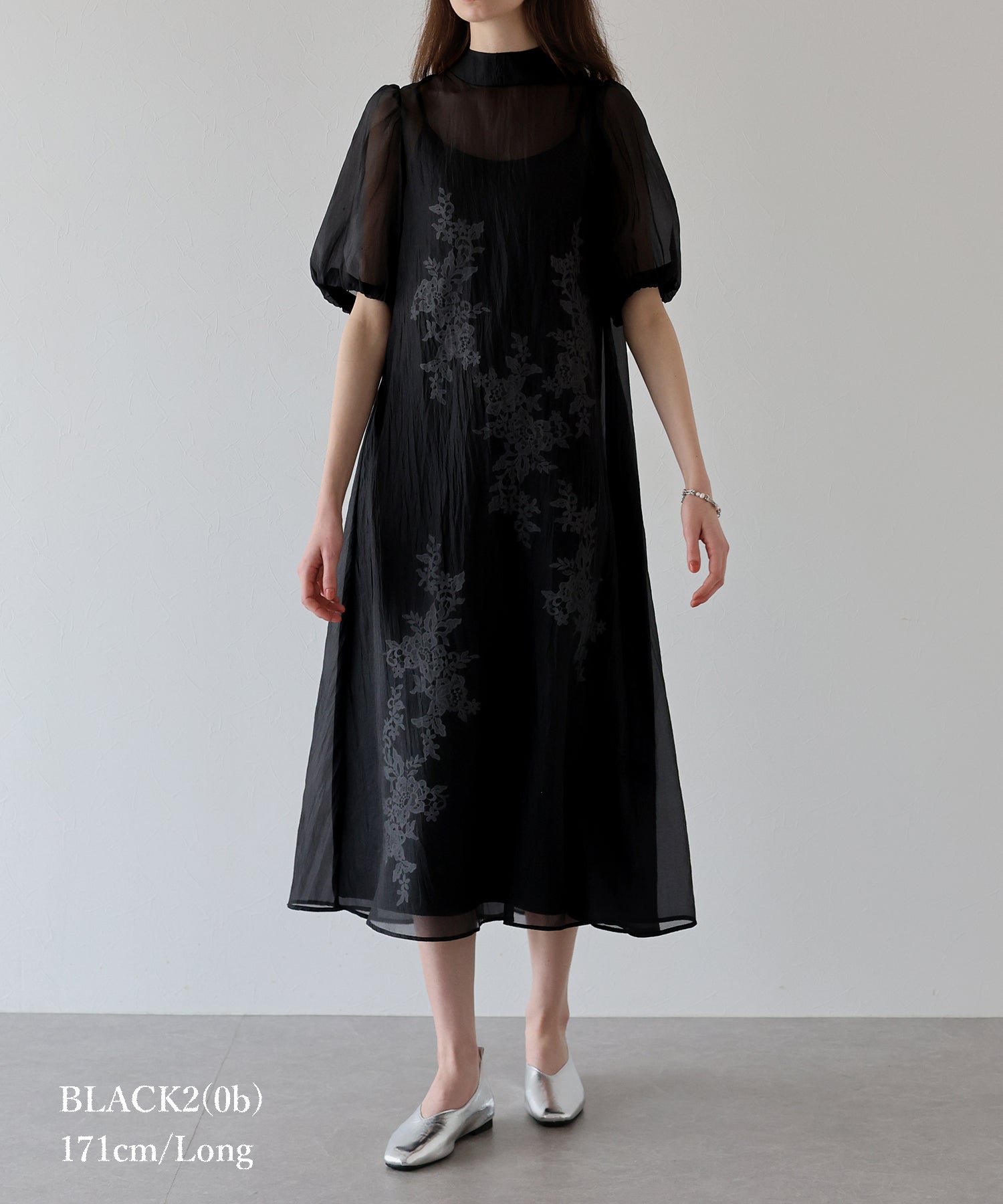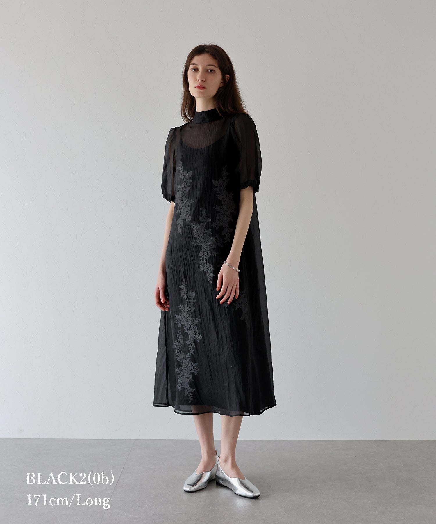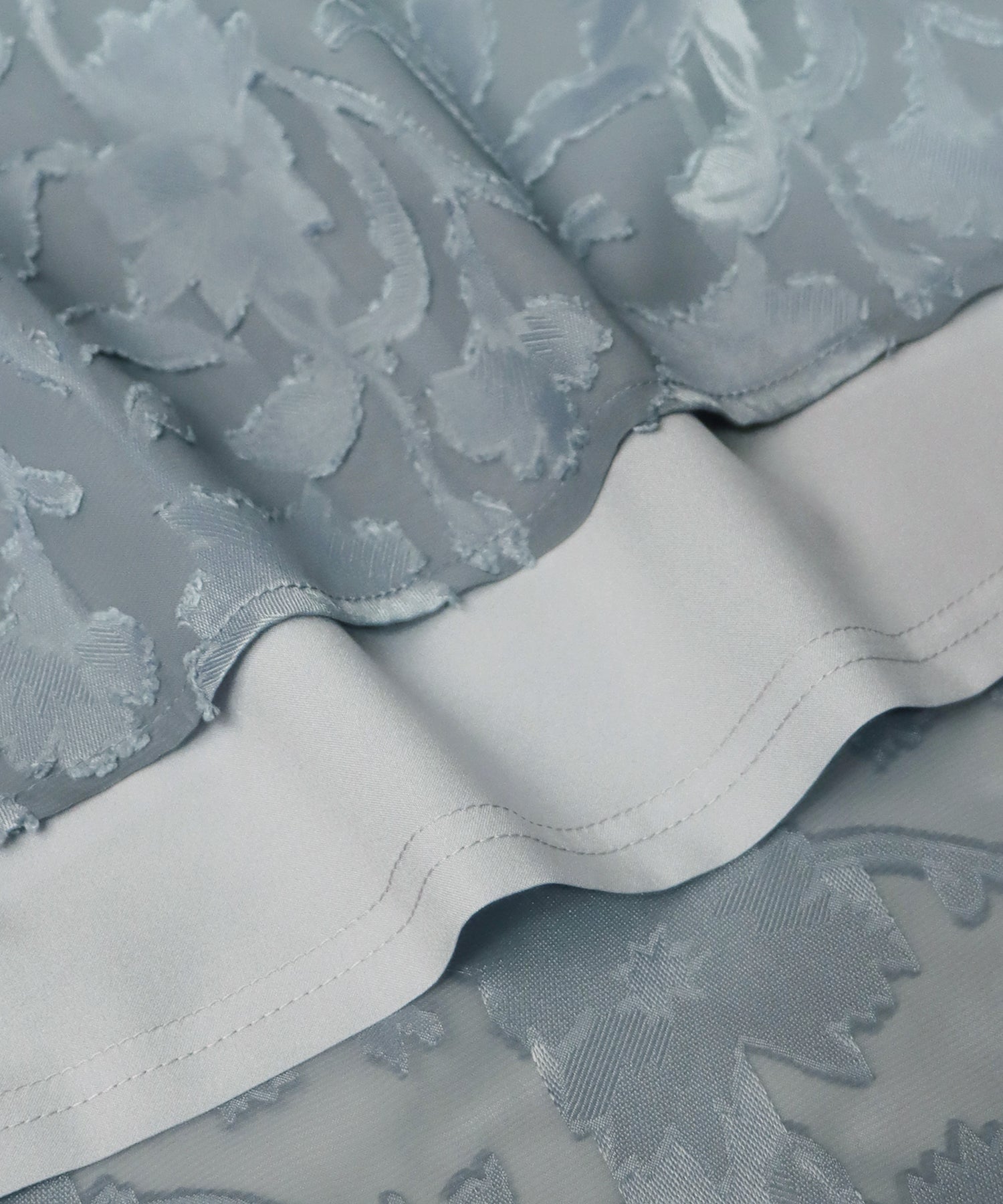 | 【ジャガードタイプ】 ワンピース:シフォンの柔らかい雰囲気を纏った花柄ジャカード素材を採用。 石川県の工場で製織・染色を行い、繊細なカット技術と柄表現により、薄地でありながら上質な立体感を演出しています。 インナー:高い伸縮性と快適な着心地を実現する合繊ストレッチ素材を使用。 【オーガンジータイプ】 ワンピース:ワッシャー(シワ加工)をかけたヴィンテージ風のシアー素材 インナー: 花柄レース刺繍を施した合繊ストレッチ素材 厚さ:薄手 透け感:あり 伸縮性:なし |
