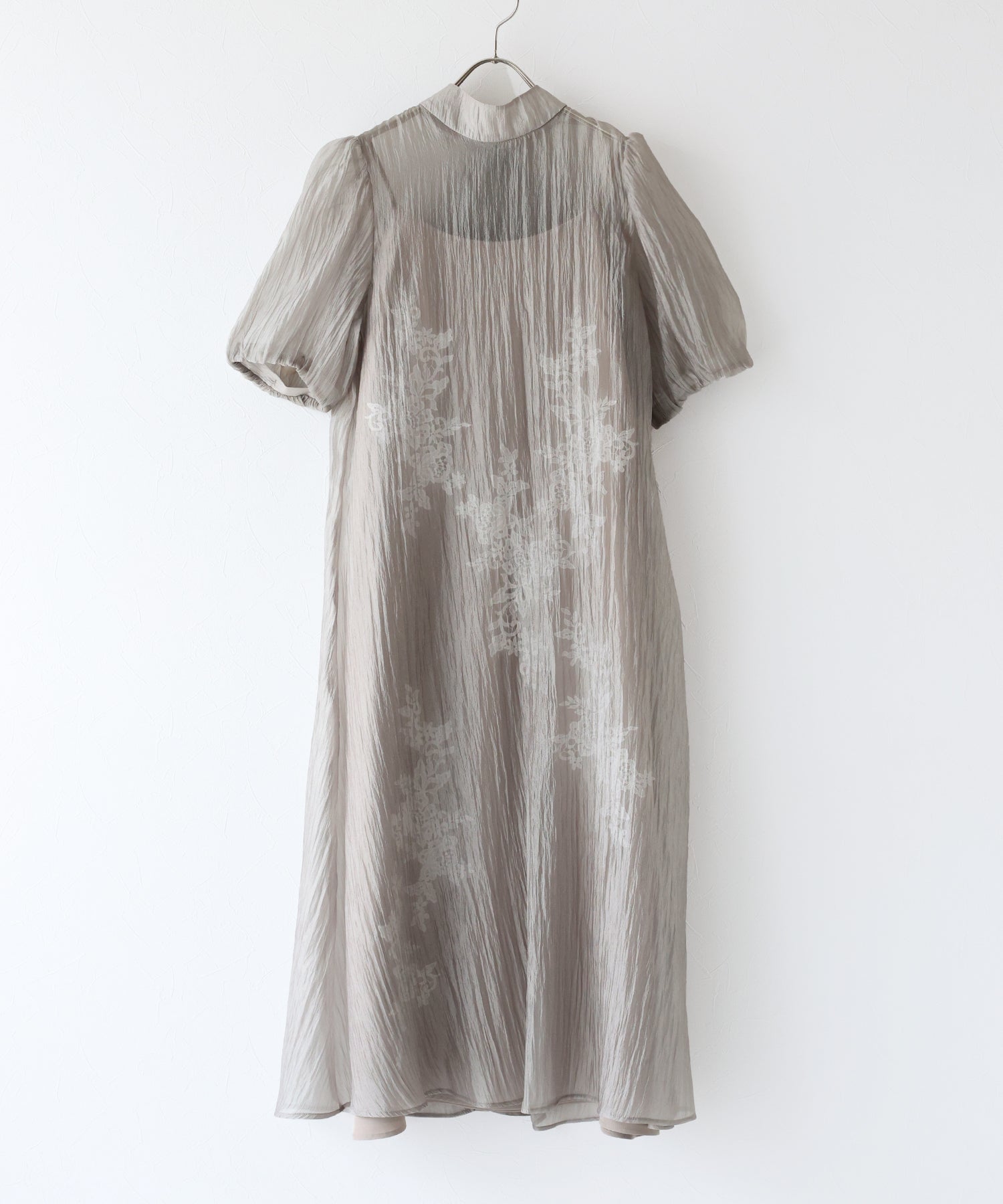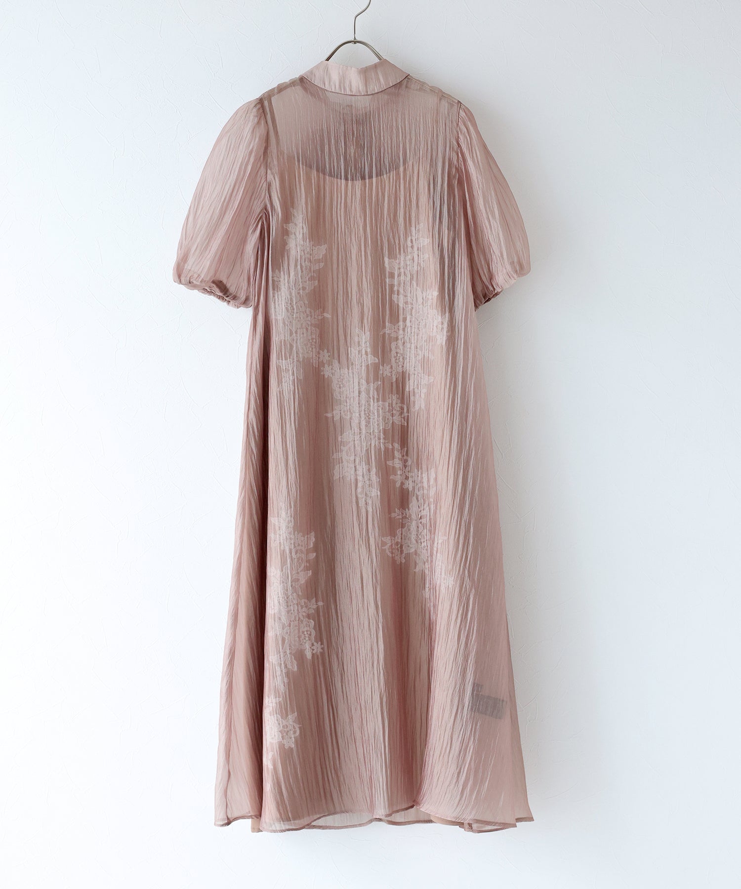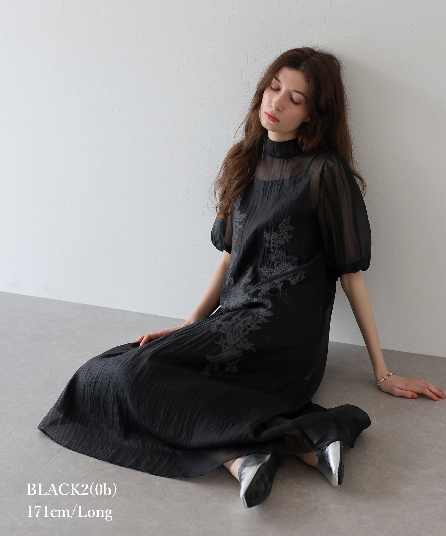 | 【ジャガードタイプ】 ワンピース:シフォンの柔らかい雰囲気を纏った花柄ジャカード素材を採用。 石川県の工場で製織・染色を行い、繊細なカット技術と柄表現により、薄地でありながら上質な立体感を演出しています。 インナー:高い伸縮性と快適な着心地を実現する合繊ストレッチ素材を使用。 【オーガンジータイプ】 ワンピース:ワッシャー(シワ加工)をかけたヴィンテージ風のシアー素材 インナー: 花柄レース刺繍を施した合繊ストレッチ素材 厚さ:薄手 透け感:あり 伸縮性:なし |