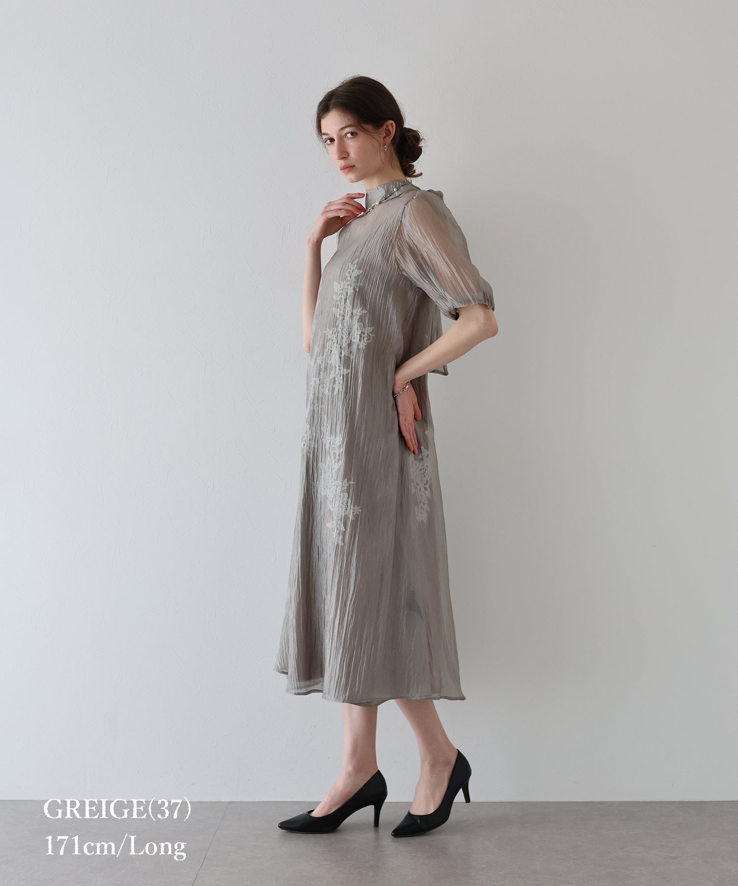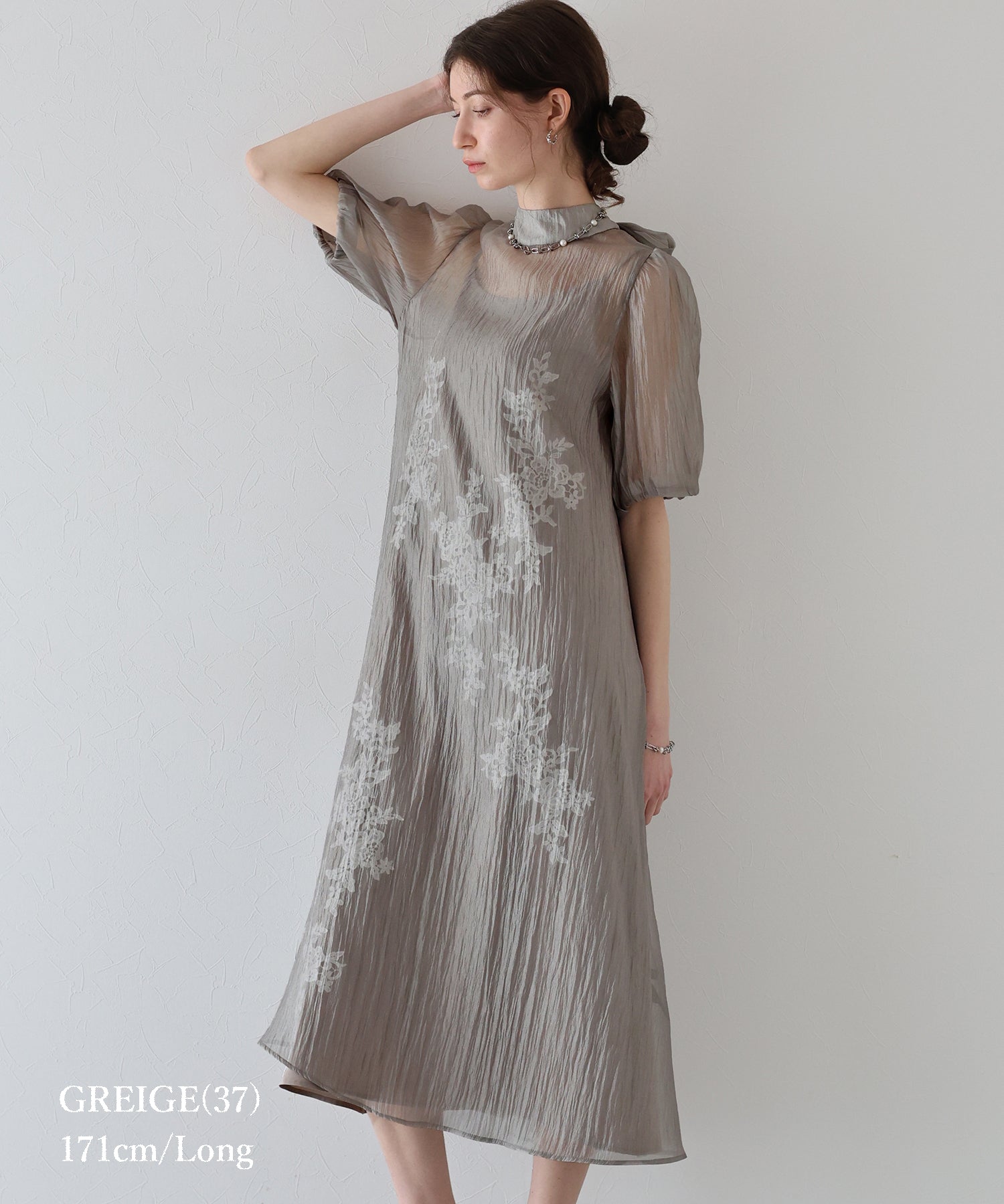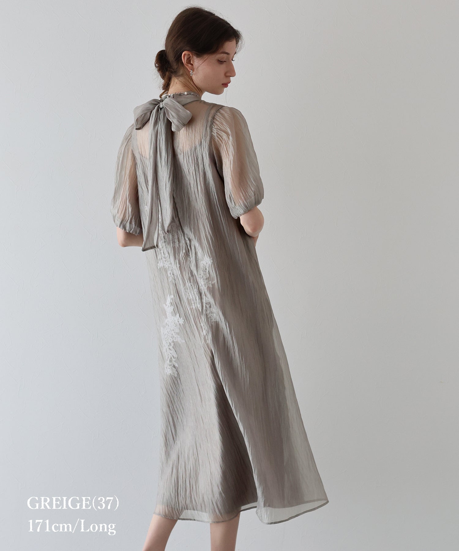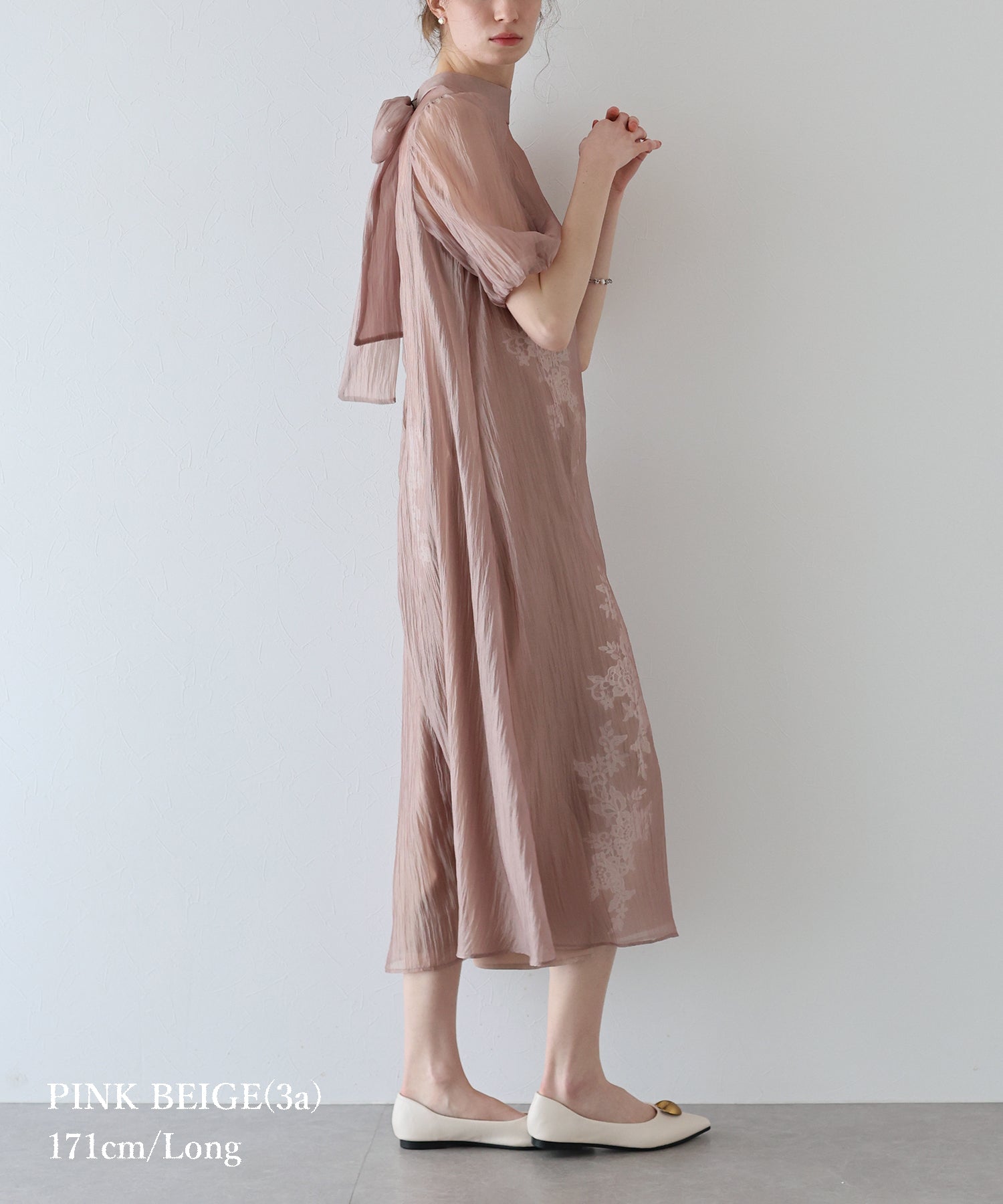 | シフォンジャカードが程よい透け感と、立体感を演出してくれるバックリボンロング丈ワンピース・パーティーワンピース・結婚式ワンピース 【POINT】 後ろ姿にリボンでドレスアップしたバックコンシャスなワンピース。 結婚式の披露宴にはもちろん、二次会などのパーティードレスや謝恩会・同窓会など大切な日にもぴったり。 【STYLING】 パーティーシーンではパンプスやミニバッグで小さめにまとめて、 あえてブーツやサンダルと合わせたコーディネートもおすすめです。 ジレやベスト・ジャケットとのコーディネートで普段使いも◎ 【DETAIL】 背中には大きめのリボンディティール。 別インナーキャミワンピース付きなので、ジャカードワンピースだけでボトムと合わせて透け感を楽しむのも◎ 大人っぽい花柄の素材に、袖はパフスリーブでかわいく仕上げています。 ミディアム丈/ロング丈の展開で、お好みの着丈を選べます。 ※生産国についてのご注意 本製品は、カラーにより生産国が異なります。 日本製:ジャガードタイプ 中国製:オーガンジータイプ 生産国が異なることで、若干の風合いや仕上がりに差が生じる場合がございますが、いずれも品質基準を満たした商品です。あらかじめご了承の上、お買い求めください。 |