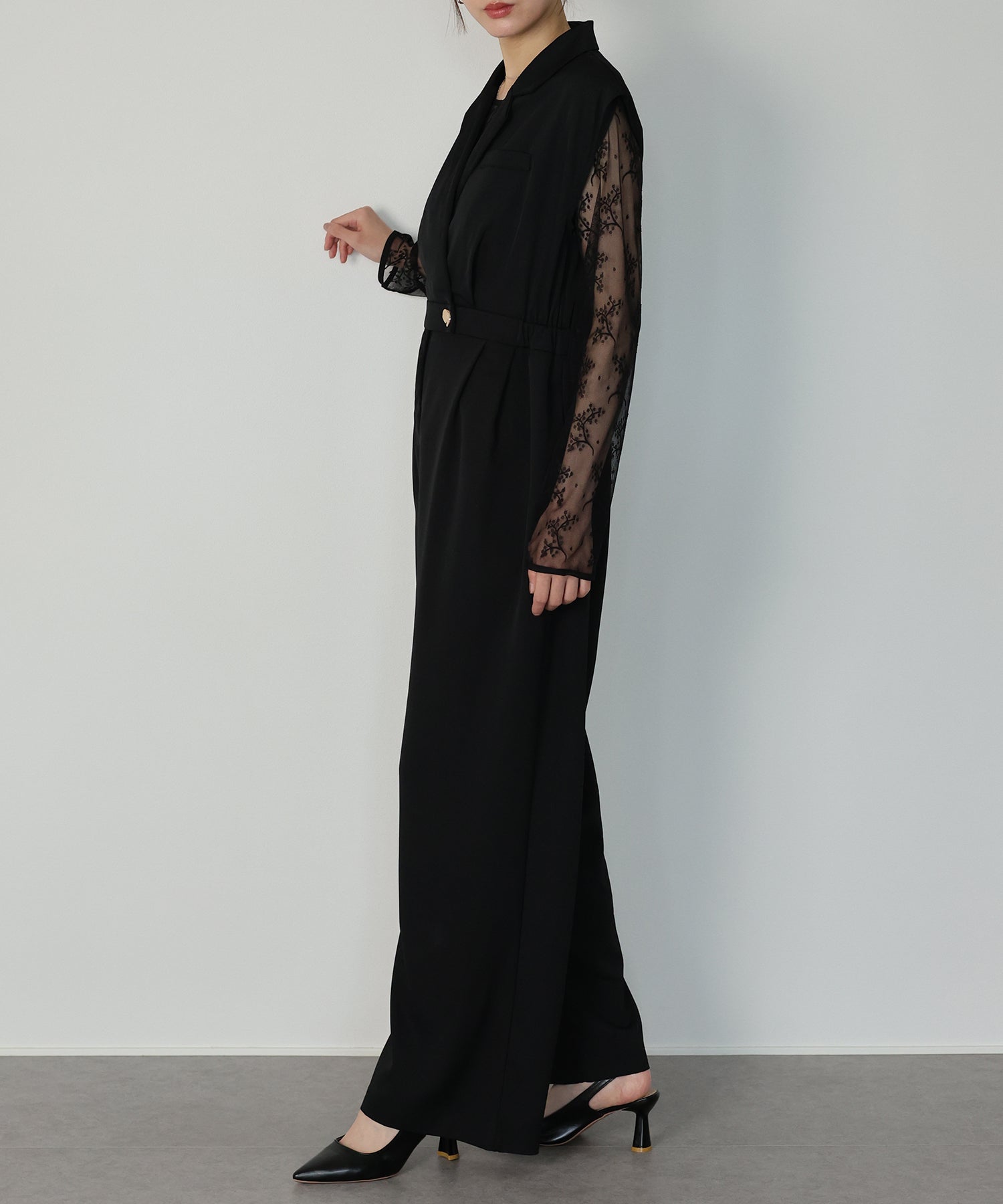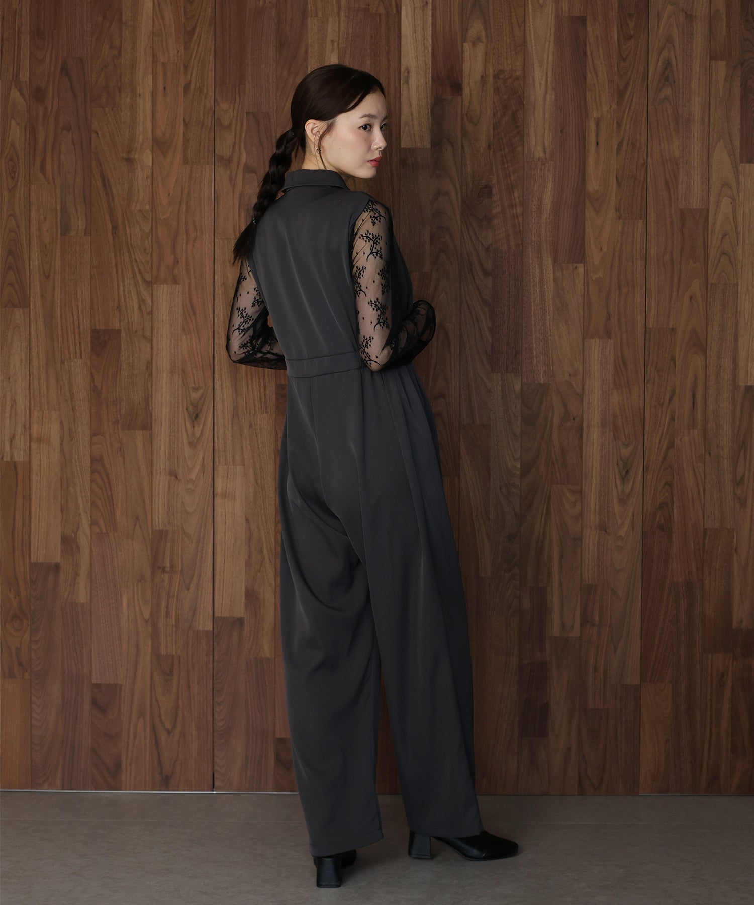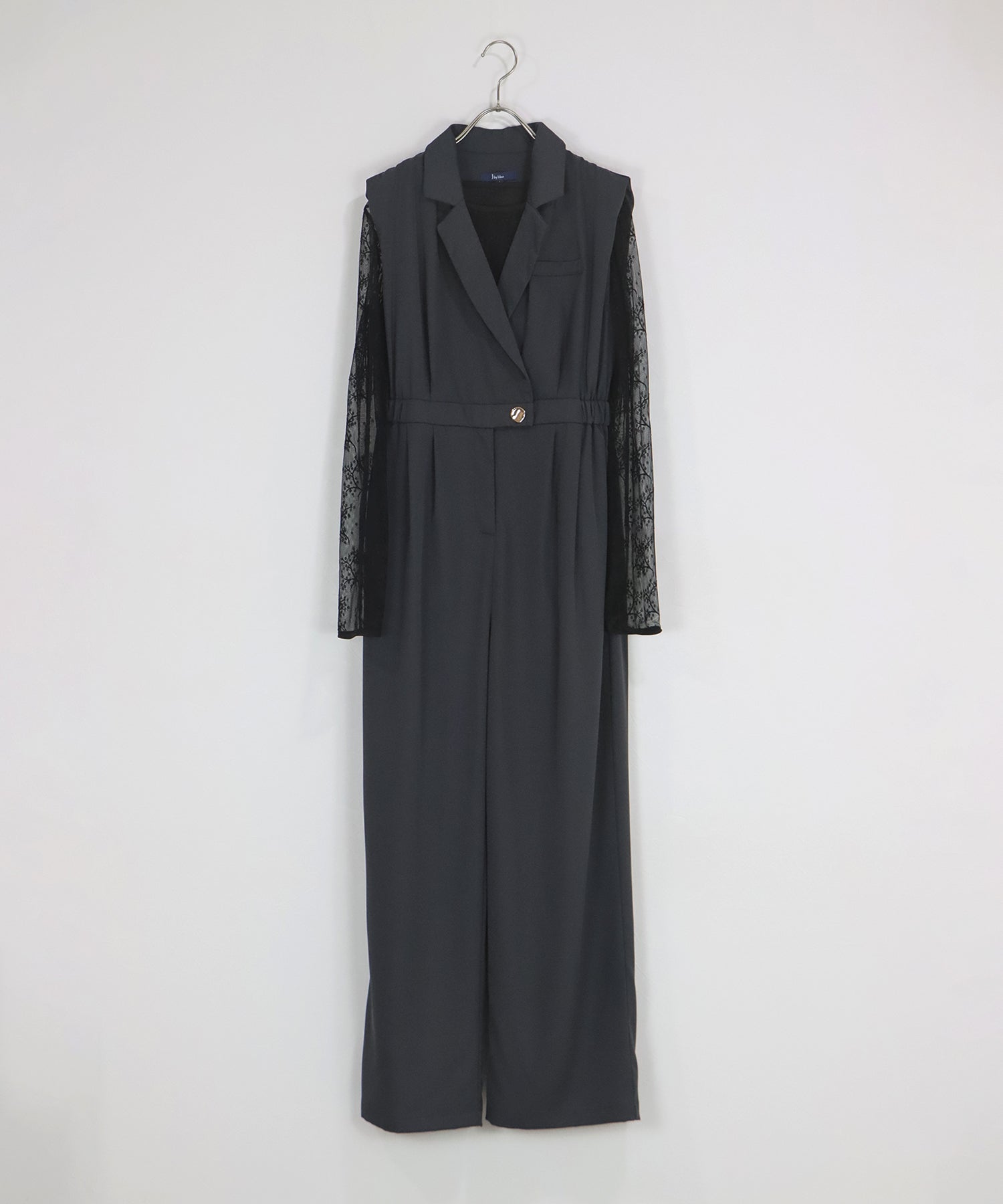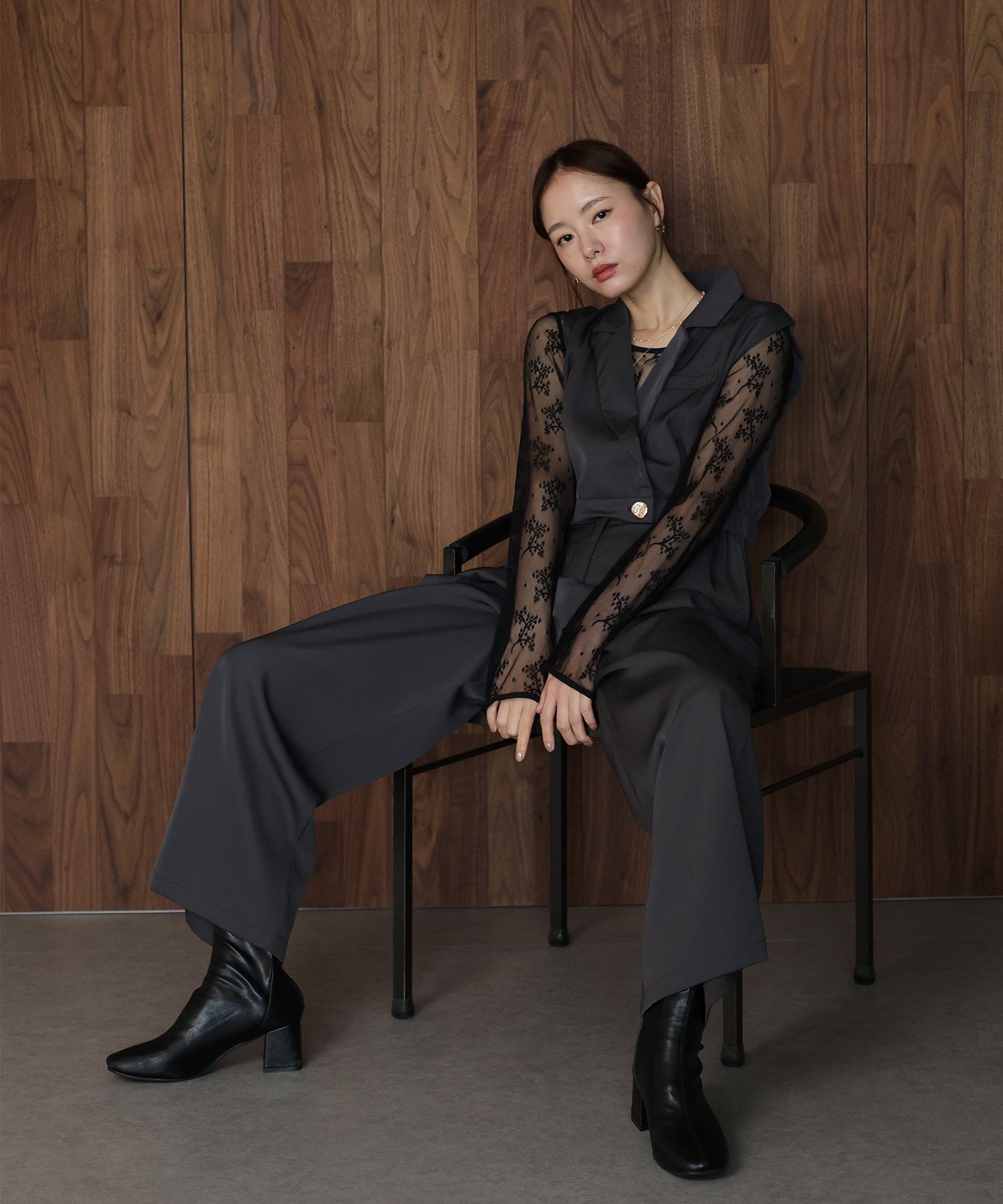テーラードオールインワンパンツドレス+ジャガードチュールトップスSET