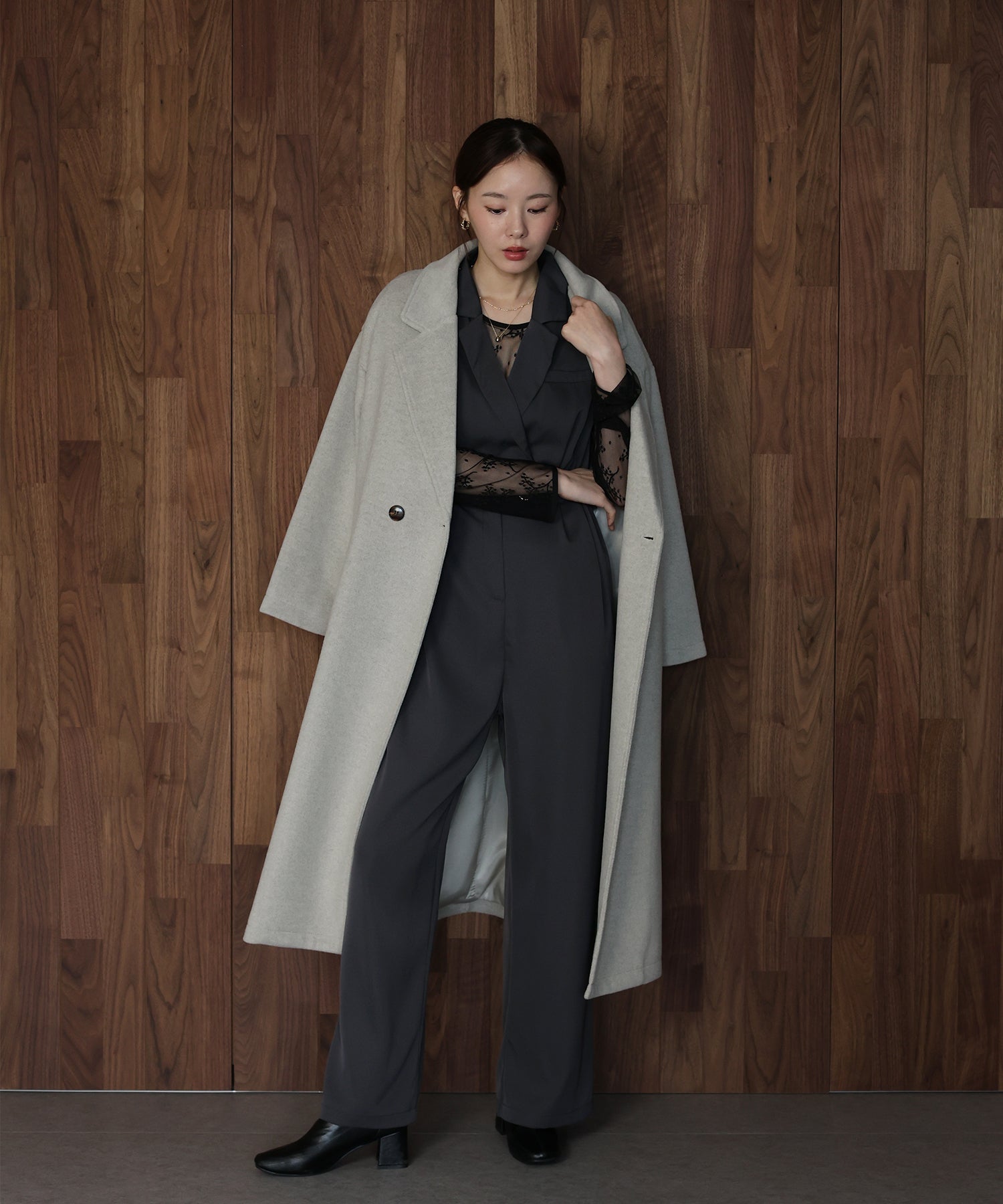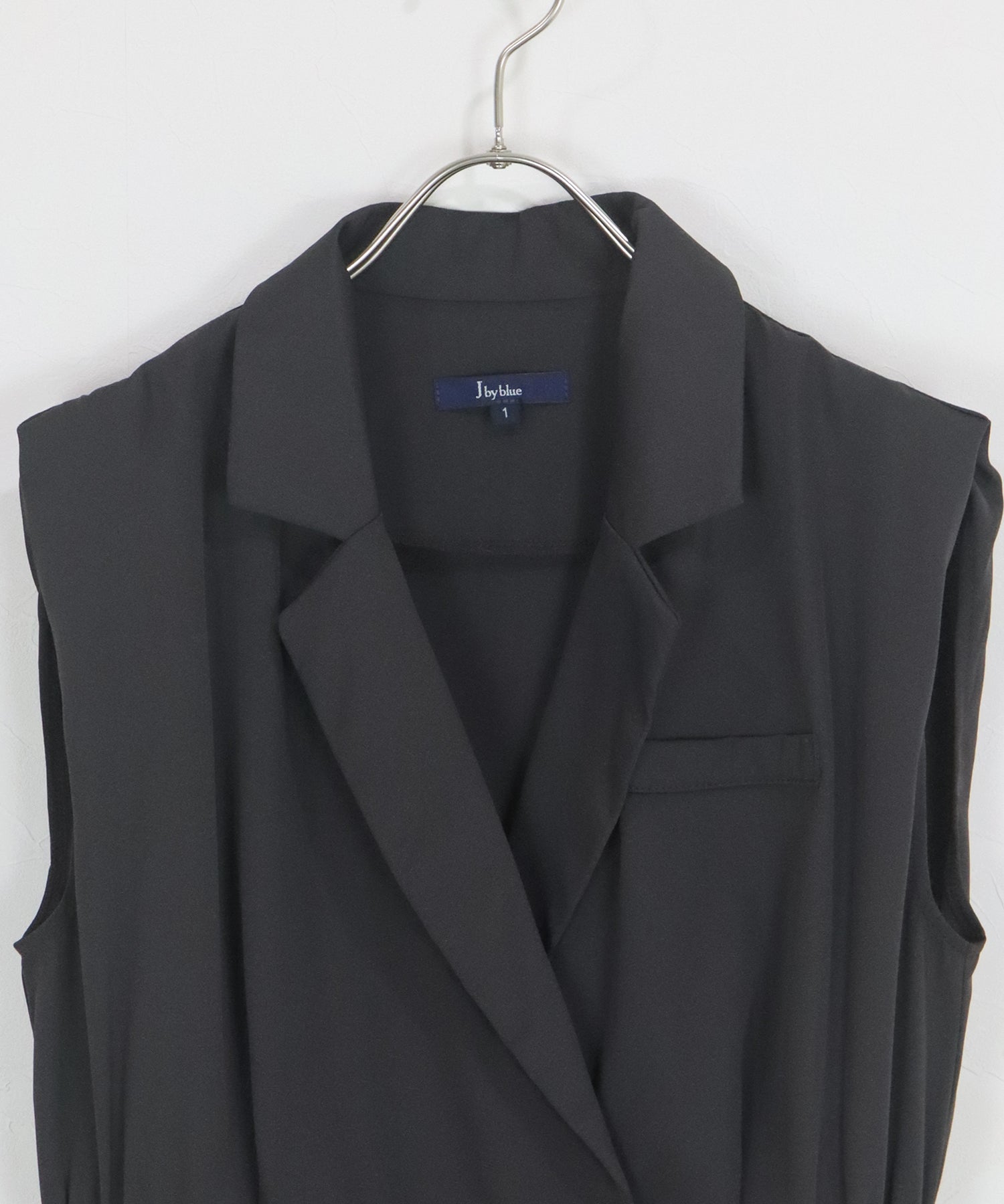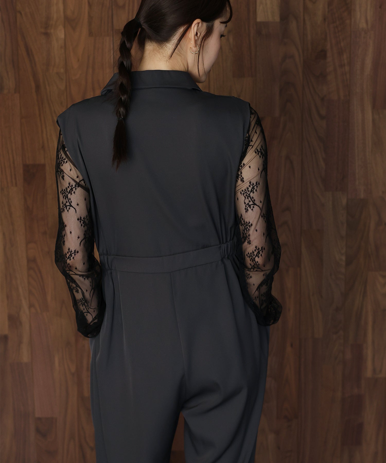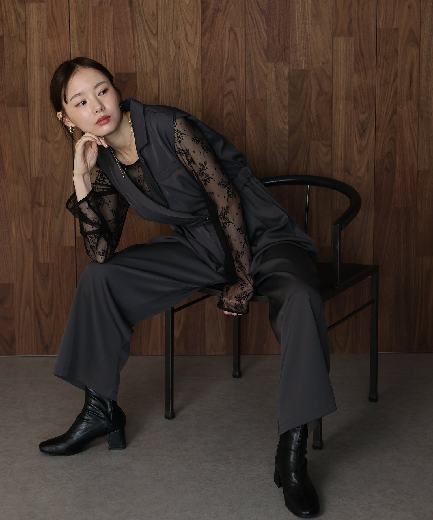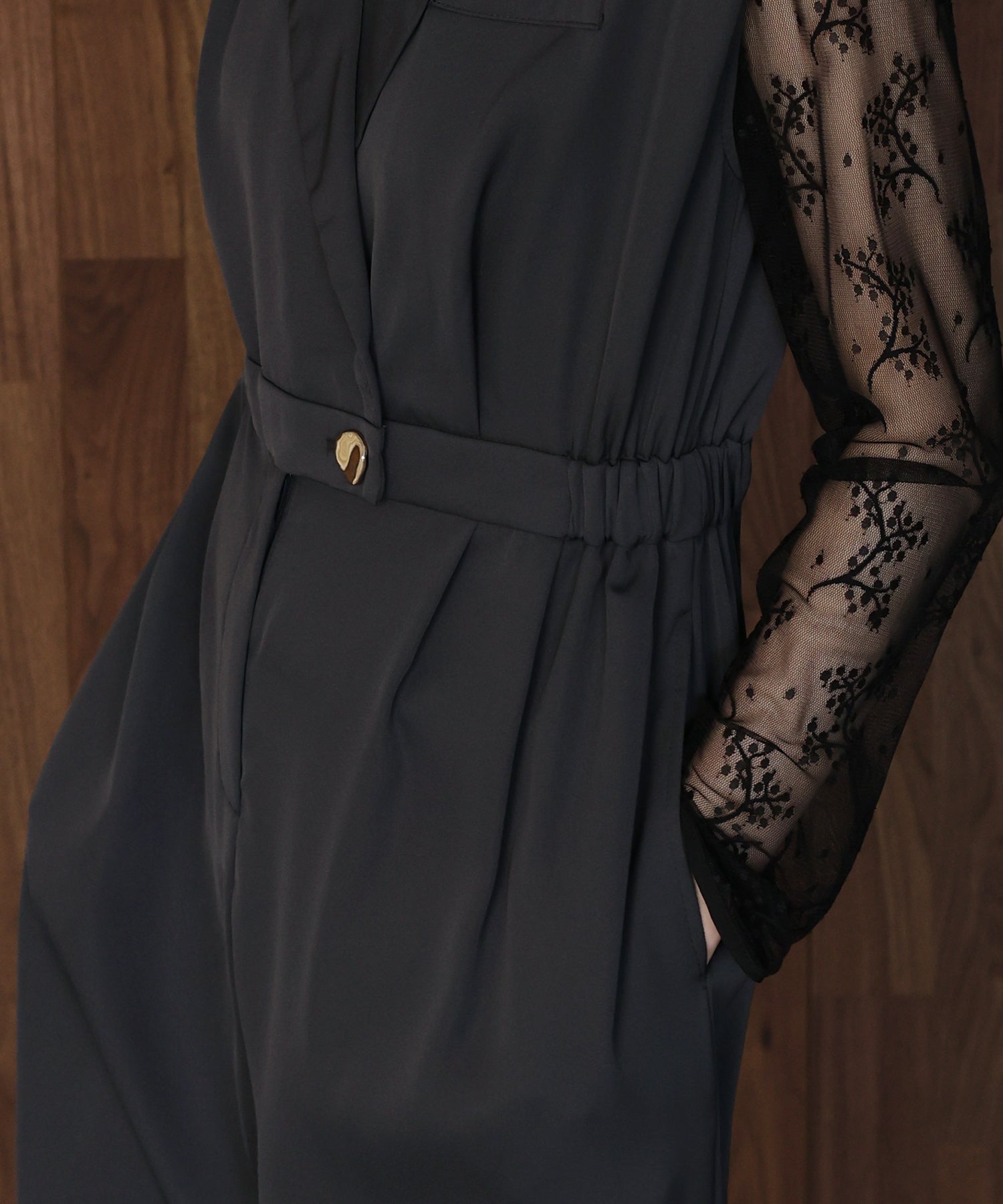 テーラードオールインワンパンツドレス+ジャガードチュールトップスSET