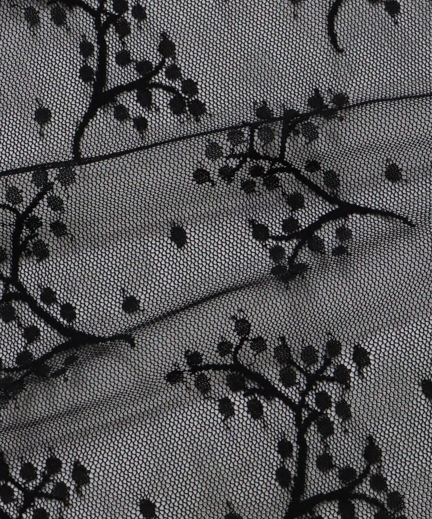 セットのレーストップスは、甘すぎない花柄で大人っぽく着られます。