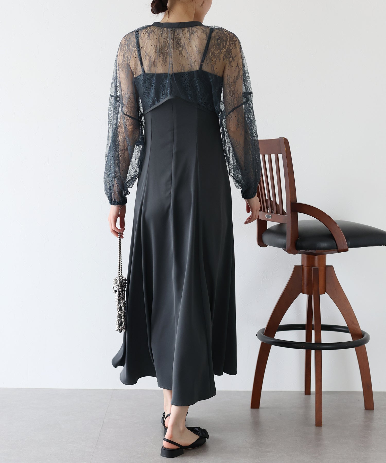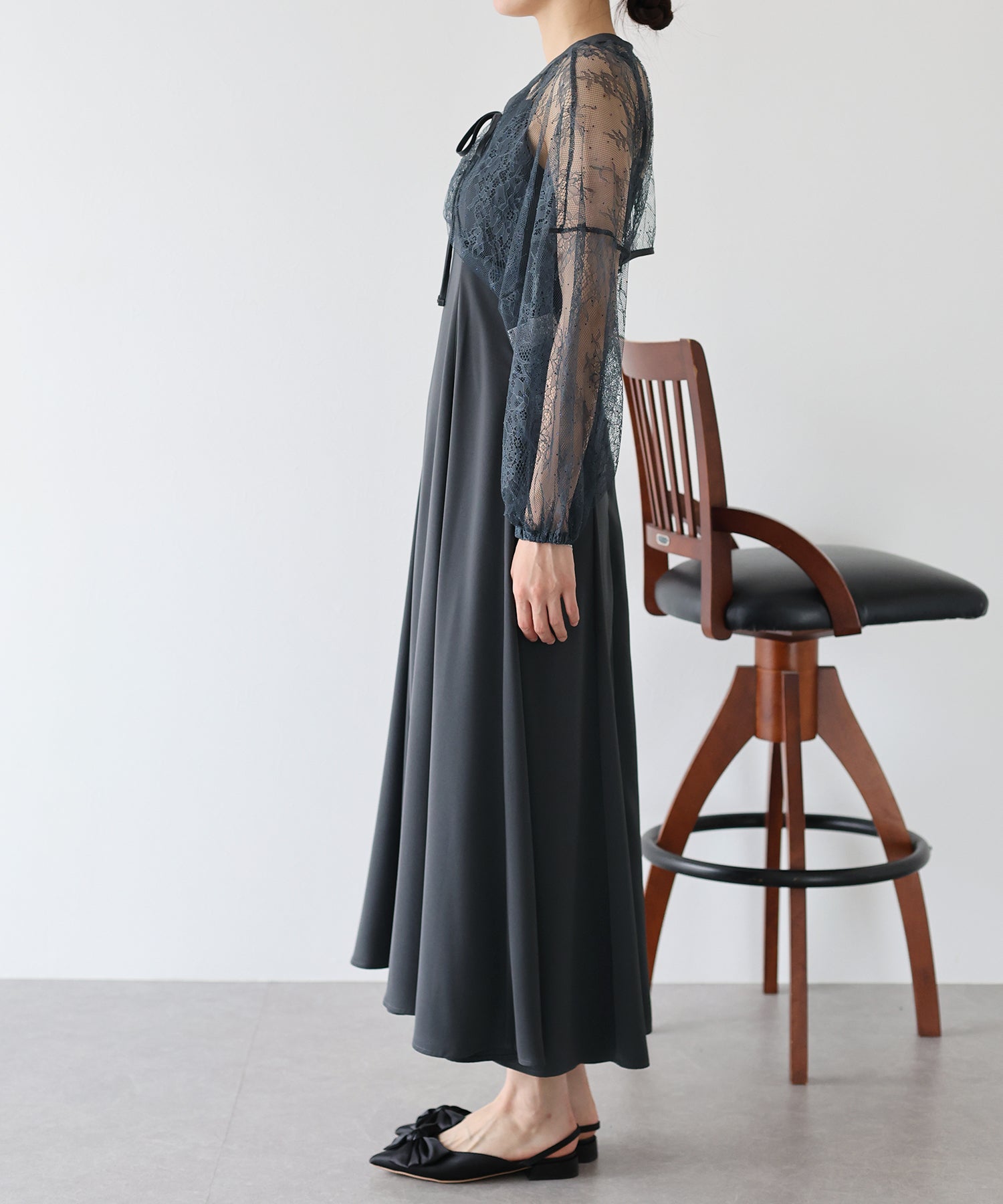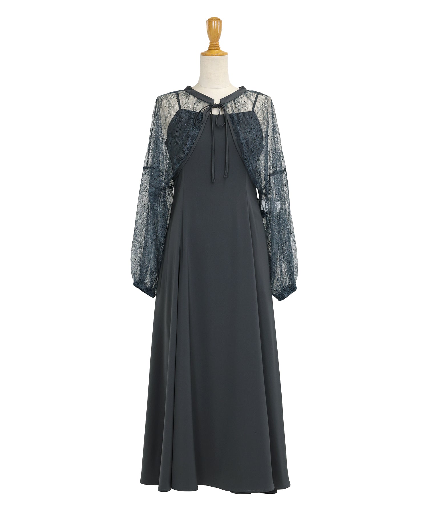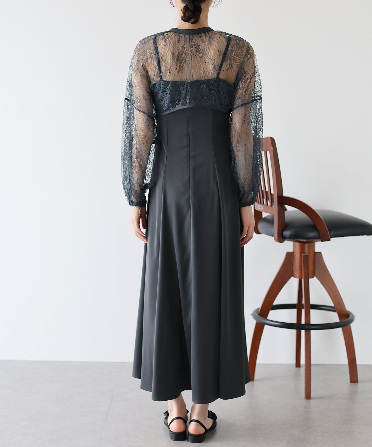 レーストップスとマーメイドワンピースがセットになったパーティーワンピース・結婚式ワンピース