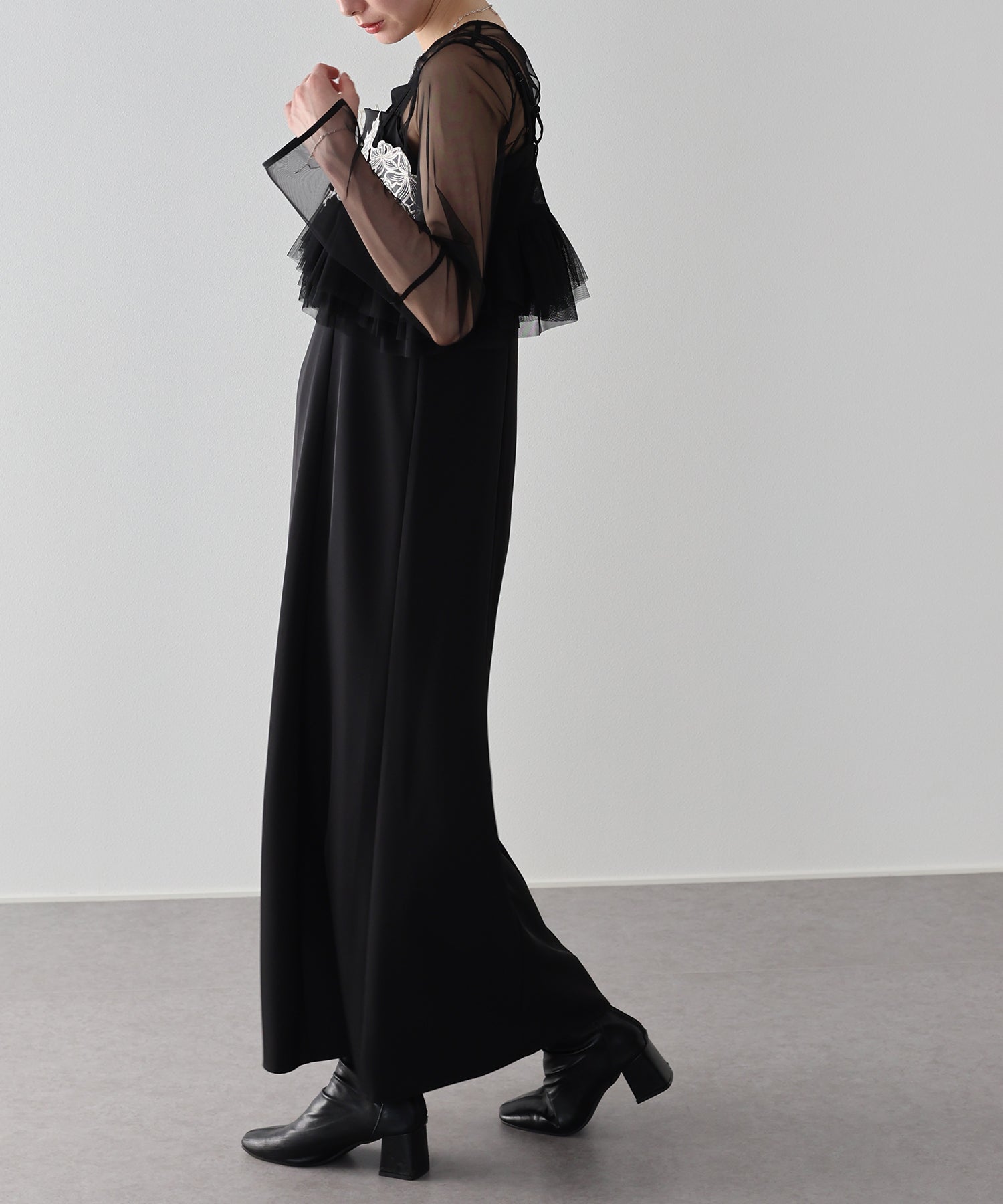 3点を合わせてドレッシーに着こなすのはもちろん、それぞれ単品でもスタイリング可能で、コーディネートの幅が広がる万能アイテムです。