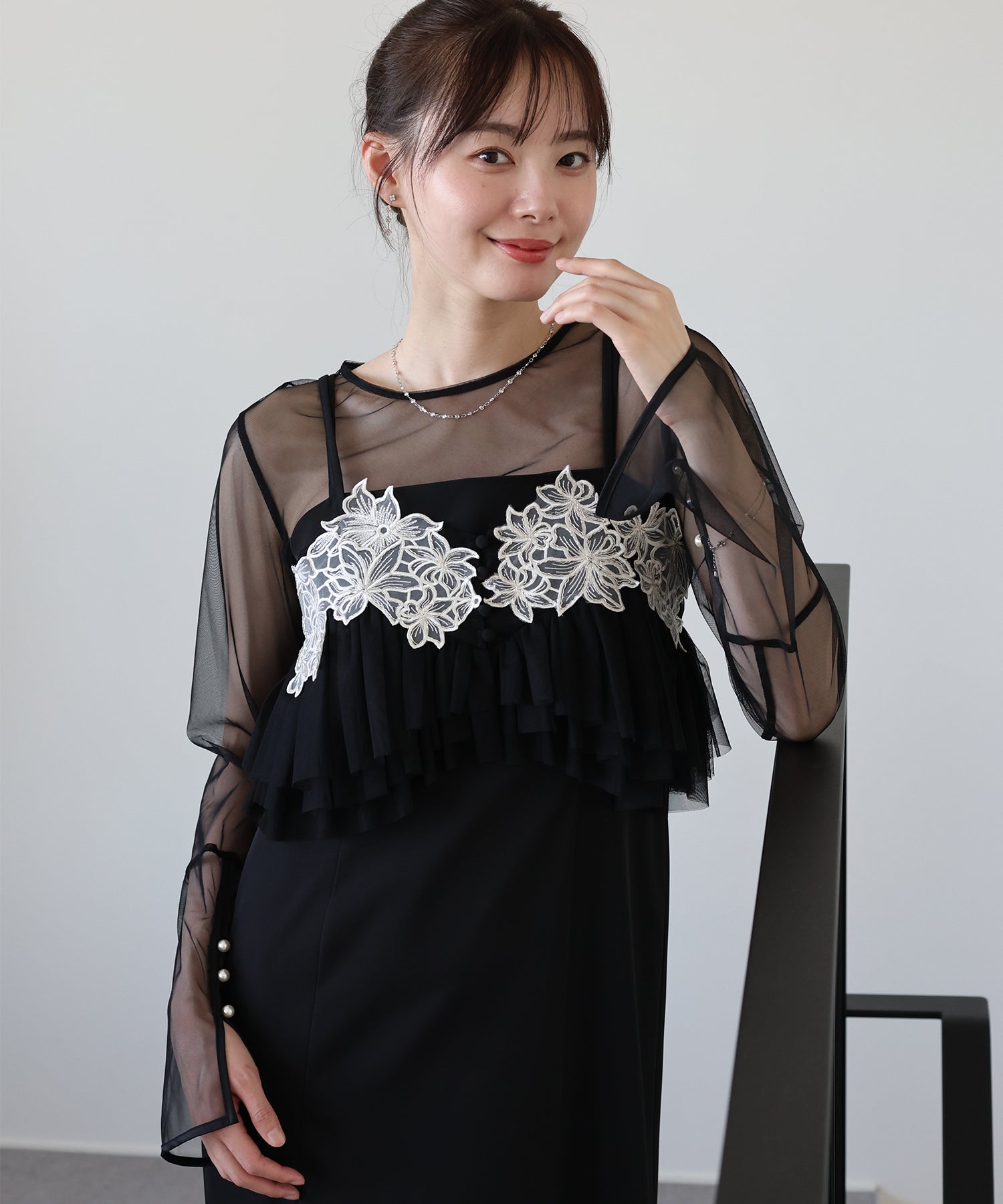 チュールティアードワンピ×ジャケットがトレンドライクなセットドレス