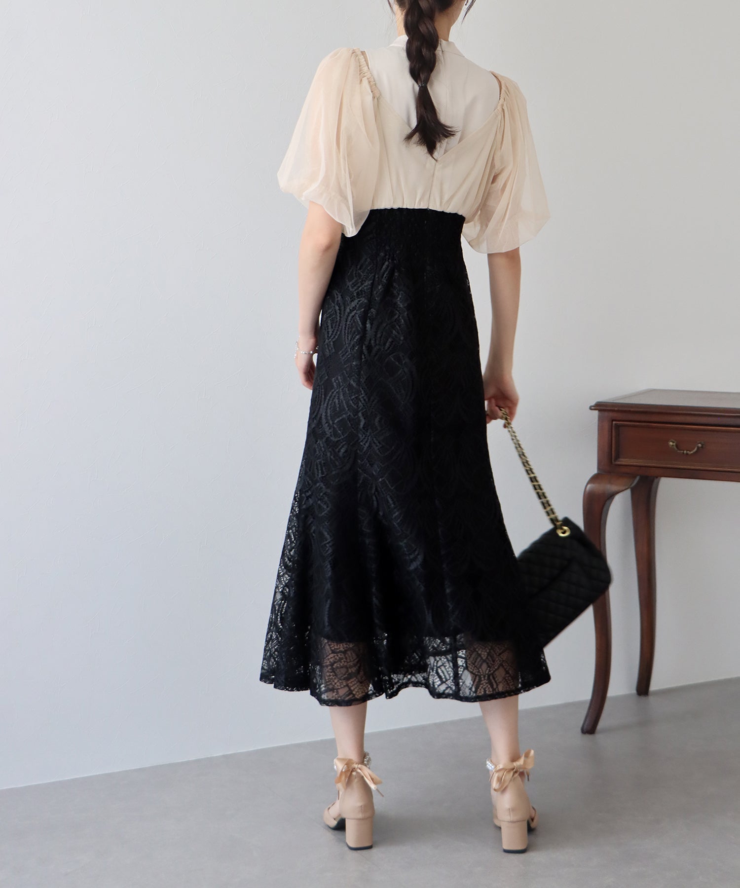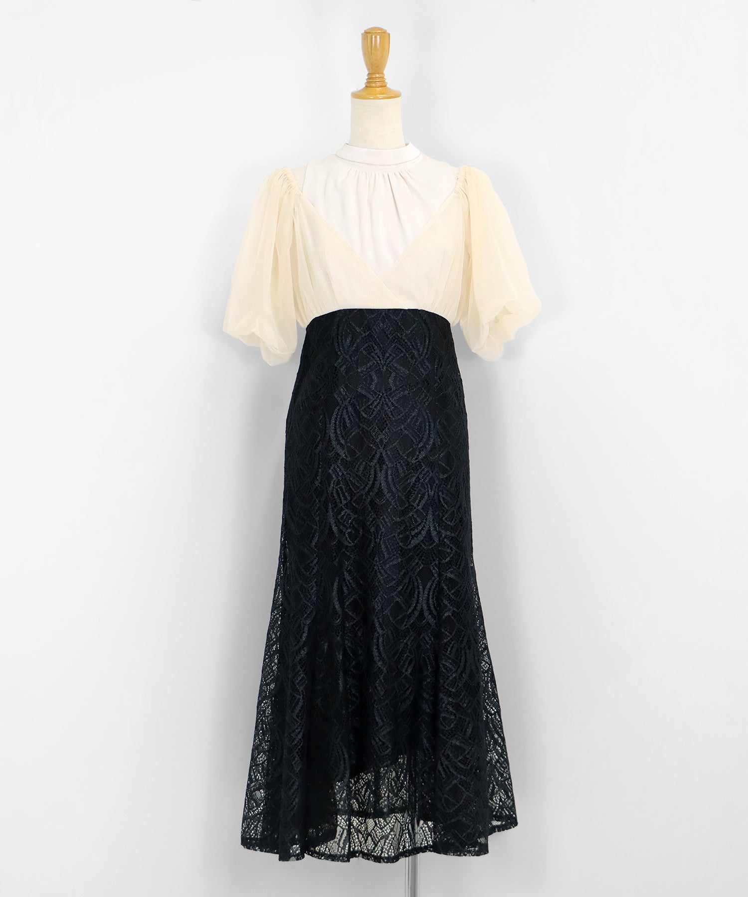 TIME SALE【SALE】バルーンスリーブレースドレス