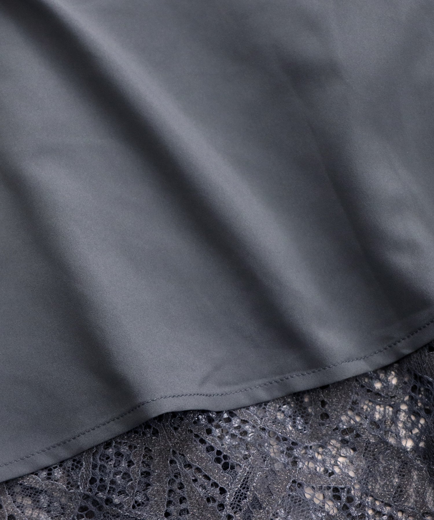 | 素材 | 表地 二重織り(身頃)部分: ポリエステル100% レース(スカート)部分: ナイロン70%, 綿30% ラメチュール(袖肌側): ポリエステル100% 無地チュール(袖外側): ポリエステル100% サテン部分: ポリエステル100% 裏地: ポリエステル100% |