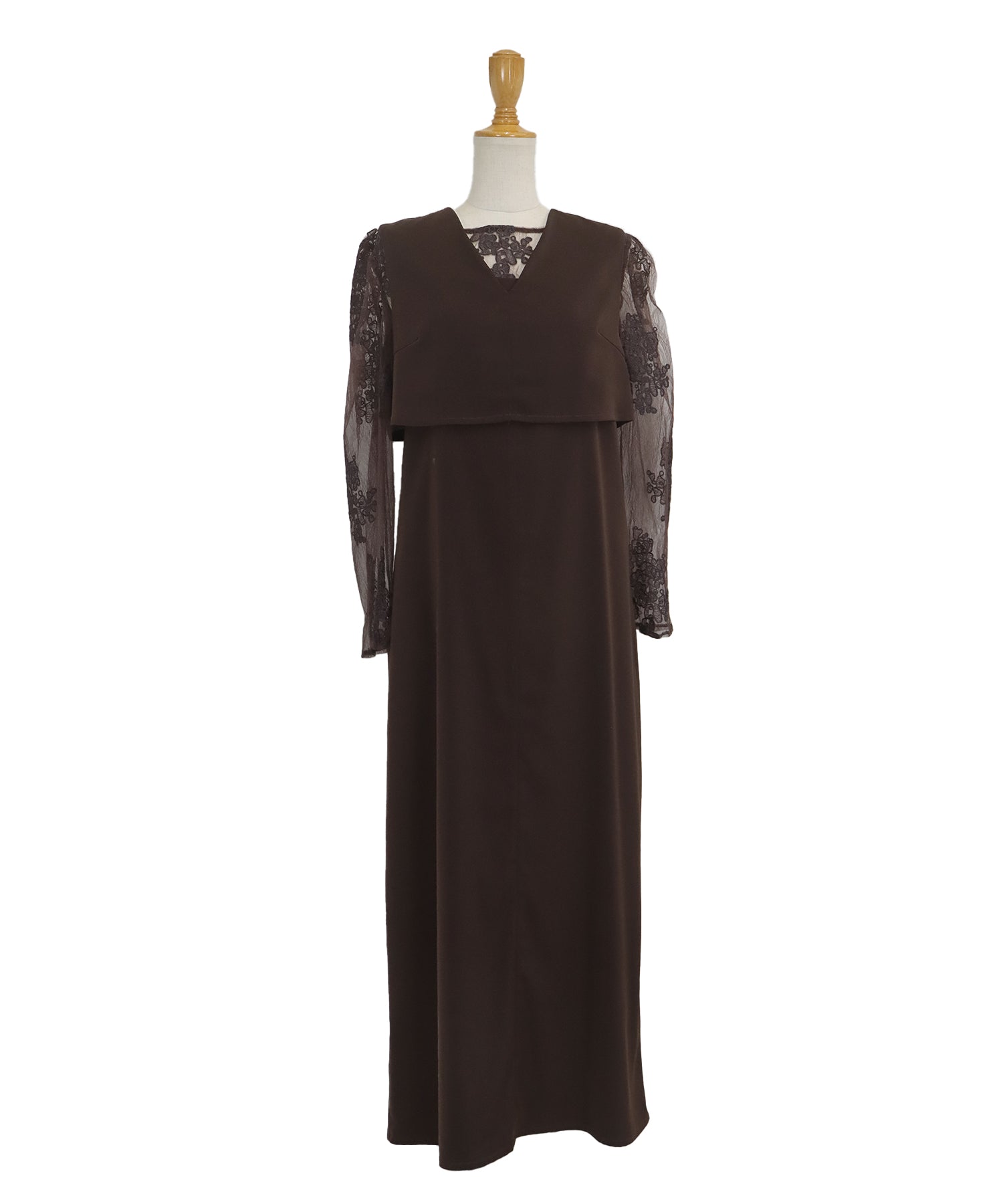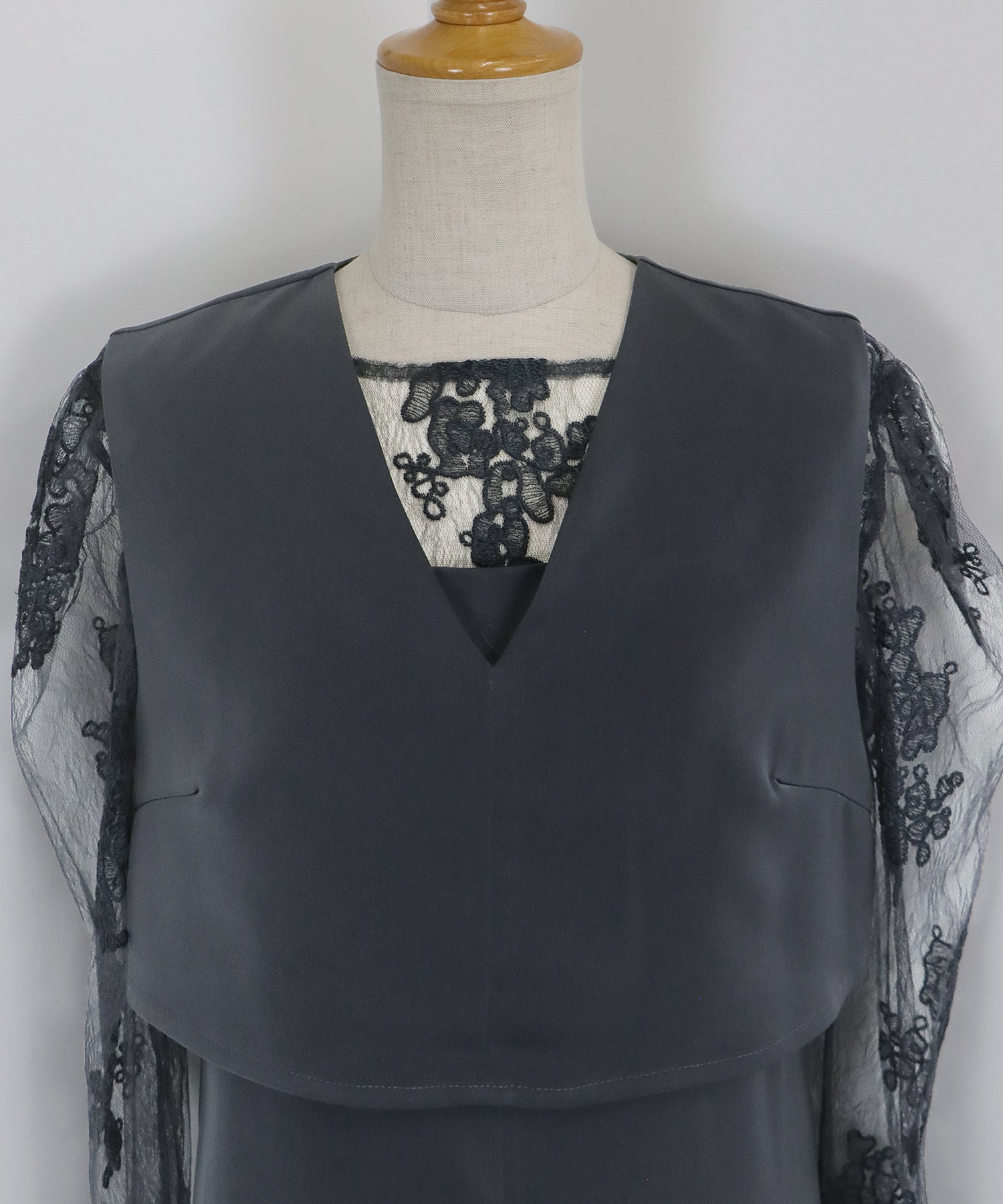 【ベスト・ワンピース】 落ち着いた光沢のポリエステル素材 【インナー】 透け感のあるレース素材 |